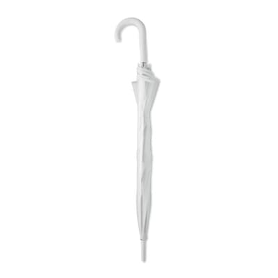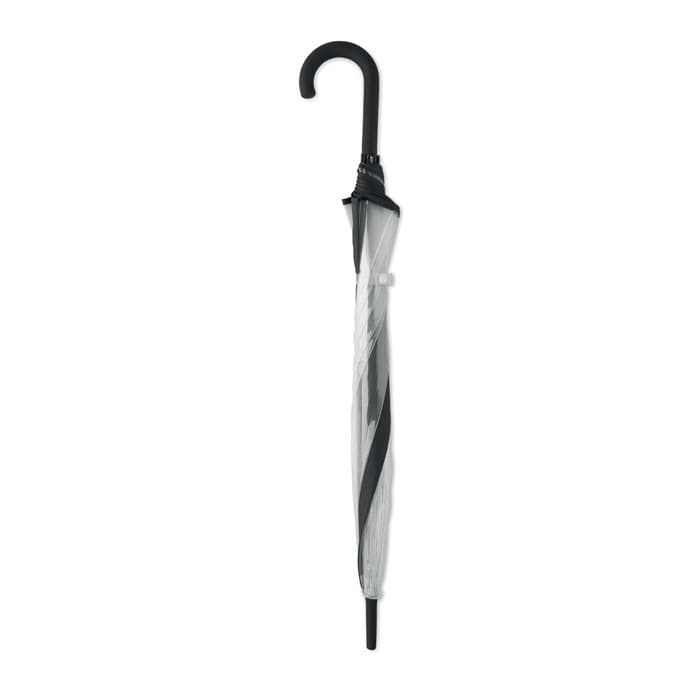 23 inch rechte paraplu van POE met bies en 1 paneel van polyester, geschikt voor bedrukken. Handmatig te openen. Glasvezel baleinen en frame. Verchroomde steel met plastic uiteinden. Handvat afgewerkt met rubber.