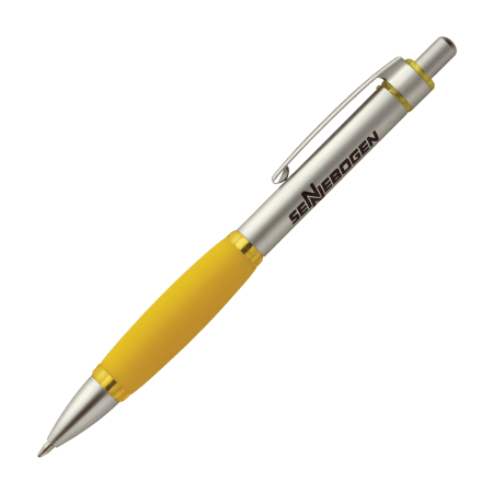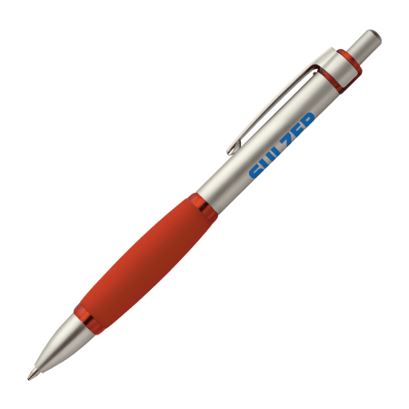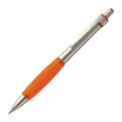 GANGARO balpen metaal Peekay. Zilverkleurige metalen design balpen met opvallende gekleurde gripzone en clipmanchet. Blauwschrijvende metalen langschrijfvulling