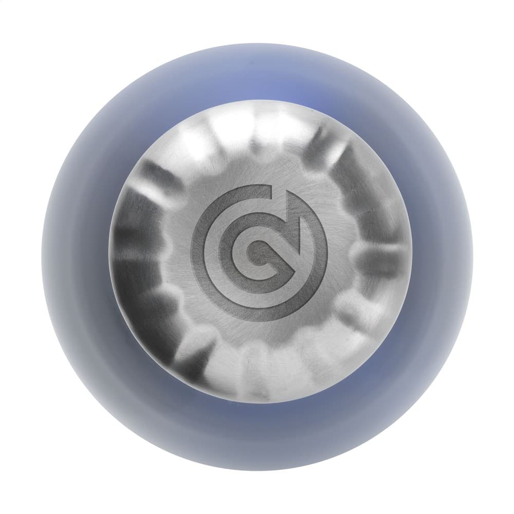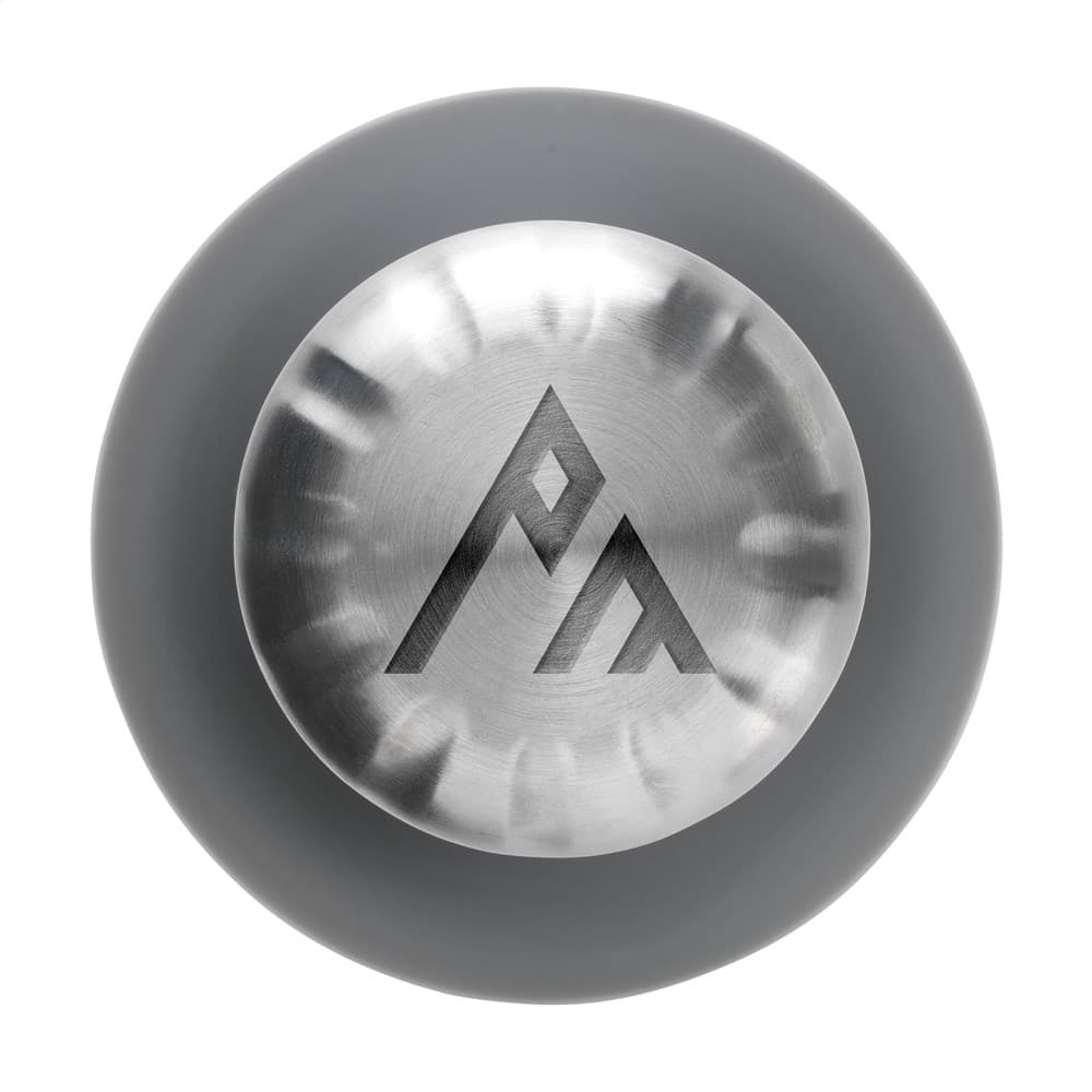 Roestvrijstalen drinkfles in 2 kleuren met rubberen grip en karabijnhaak. Inhoud: 750 ml. De karabij