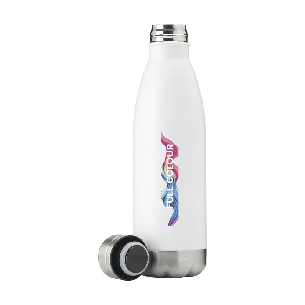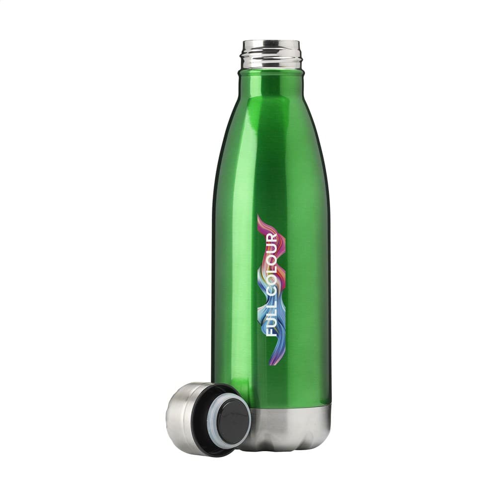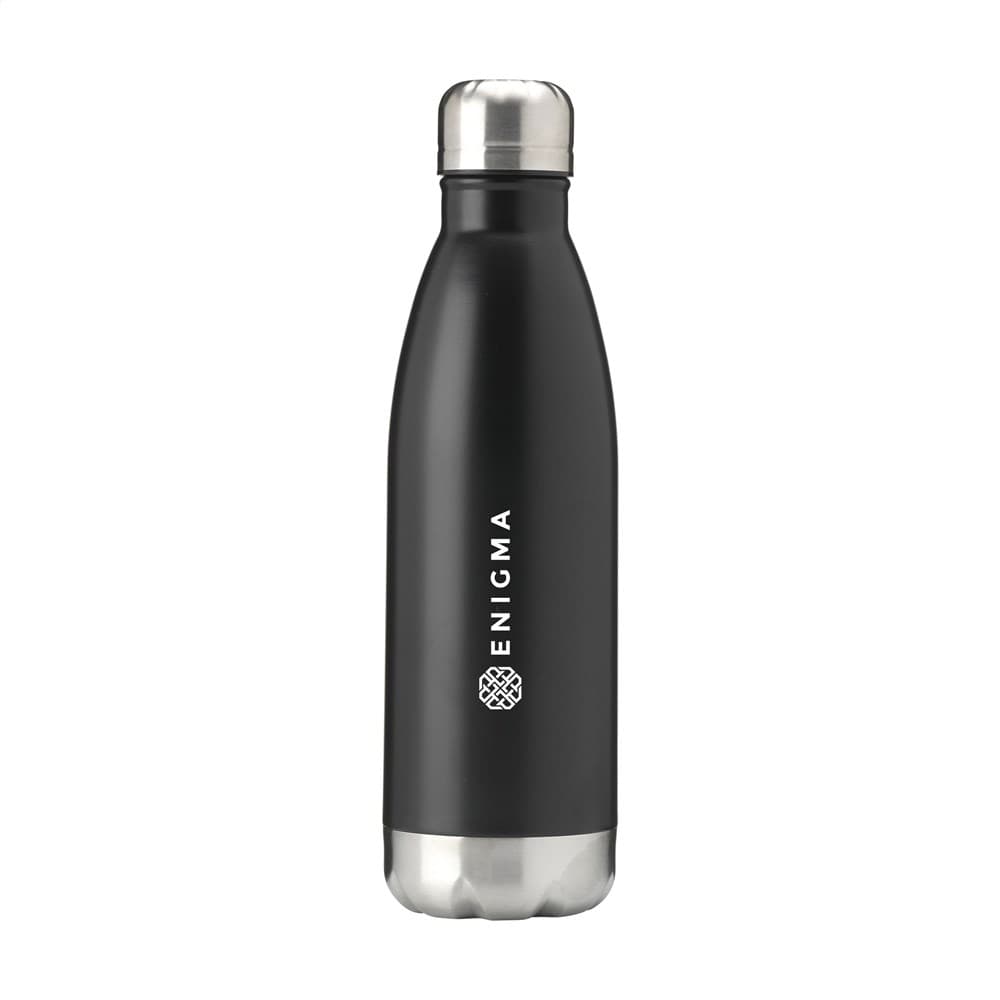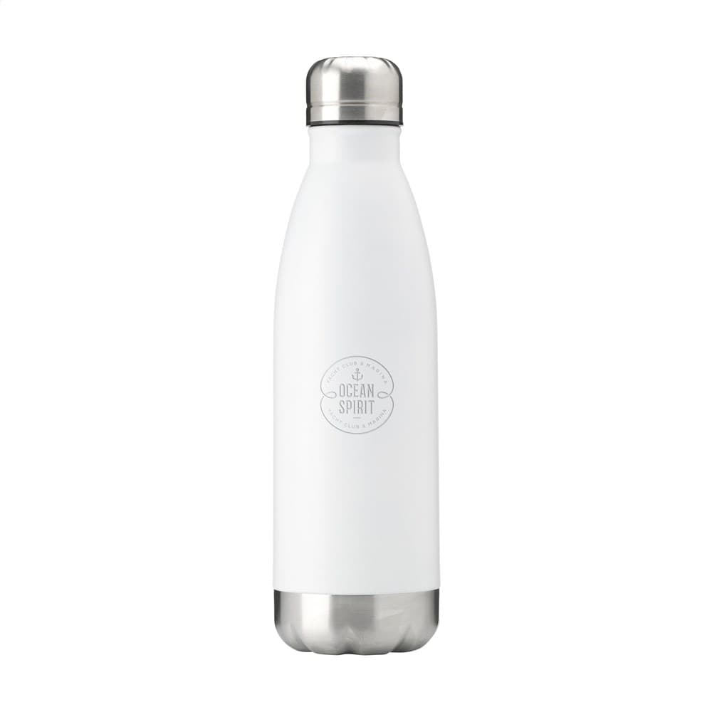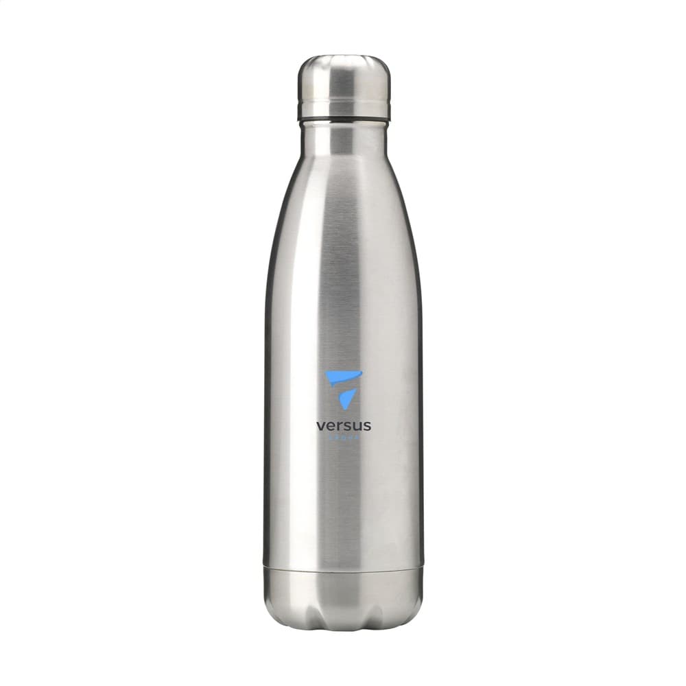 Dubbelwandige, vacuüm geïsoleerde, RVS waterfles/thermosfles. Met lekvrije schroefdop. Uitgevoerd in metallic of met mooie toplaag in matte finish (alleen de zwarte en de witte). Geschikt voor het op temperatuur houden van koud of warm water. Inhoud 500 ml. Per stuk in doosje.