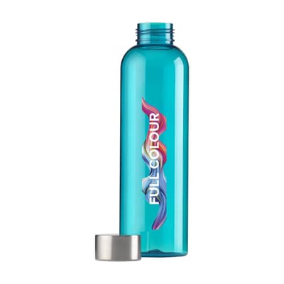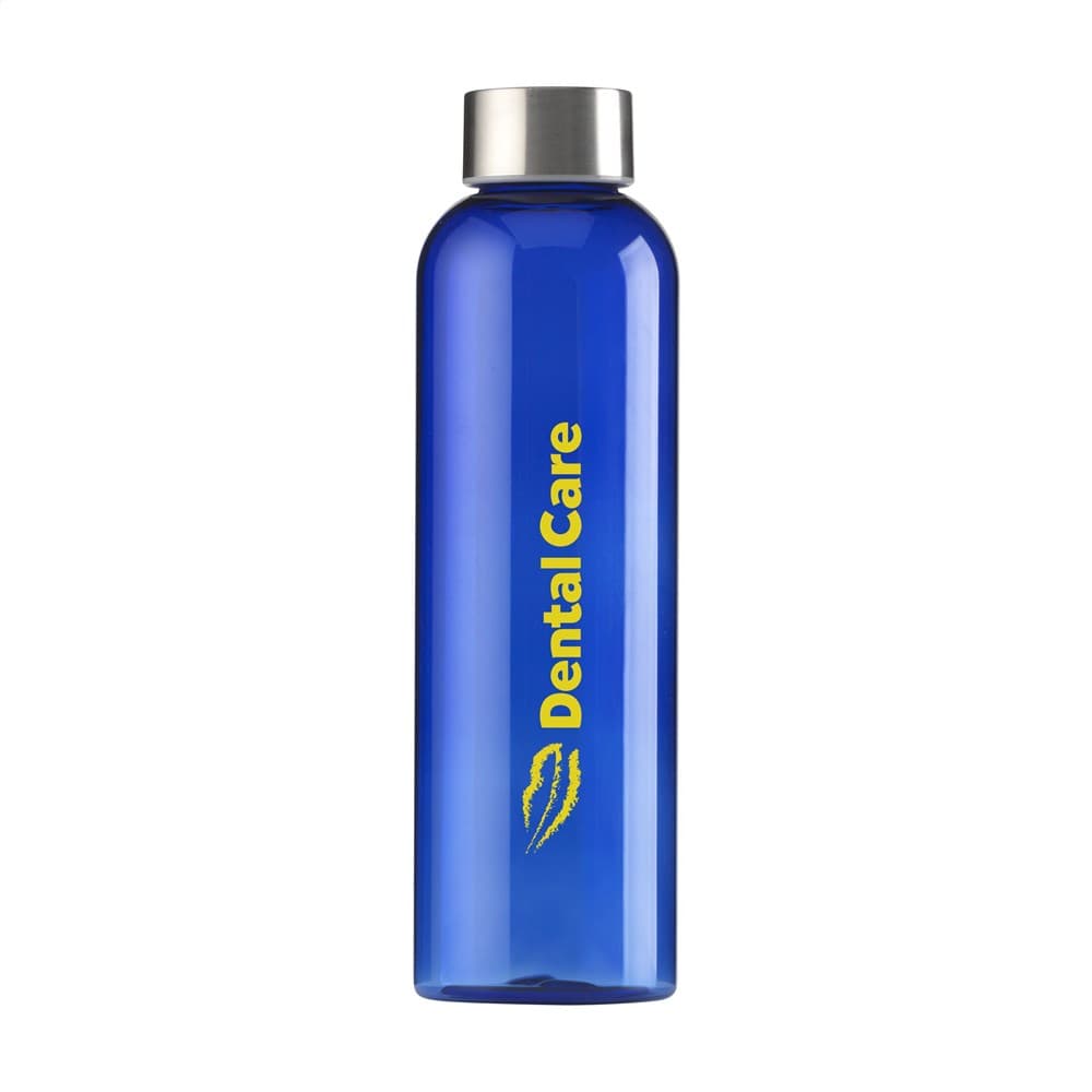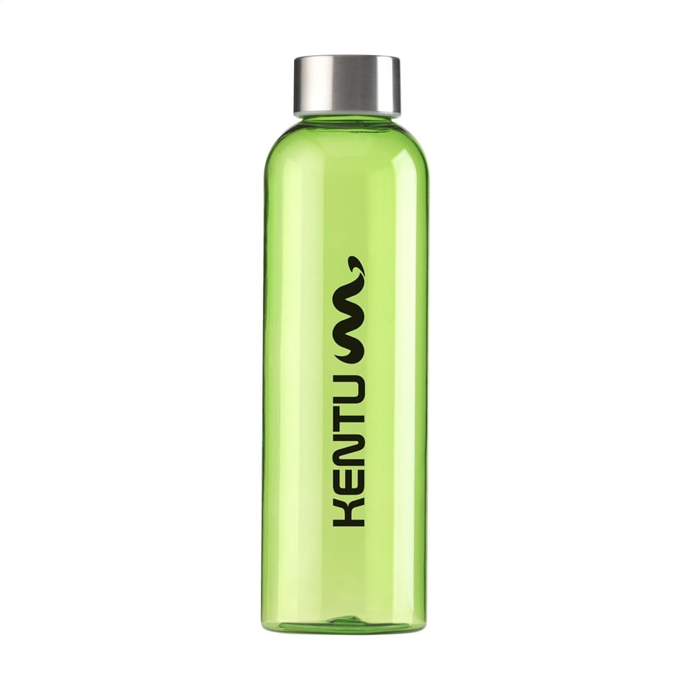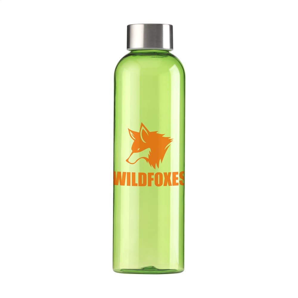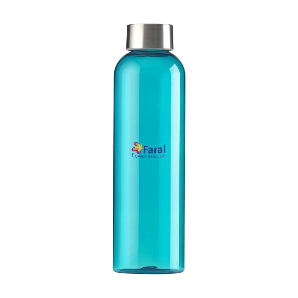 Transparantgekleurde, BPA-vrije waterfles van PCTG SK kunststof. Met RVS schroefdop. Het slanke design valt direct op en ligt bijzonder prettig in de hand. Lekvrij. Inhoud 650 ml.