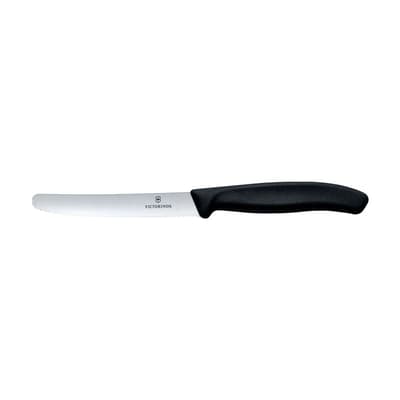 Topkwaliteit tafelmes van het merk Victorinox Swiss Classic. Het kwalitatief hoogwaardig RVS lemmet (11 cm) is gekarteld en heeft een ronde punt. Met kunststof heft. Door de ergonomische vormgeving ligt dit mesje zeer fijn in de hand. Te gebruiken bij het eten van een maaltijd of bij tal van klusjes in de keuken. vaatwasserbestendig. Exclusief Victorinox beschermhoes. Deze is los verkrijgbaar (art.nr. 0692).