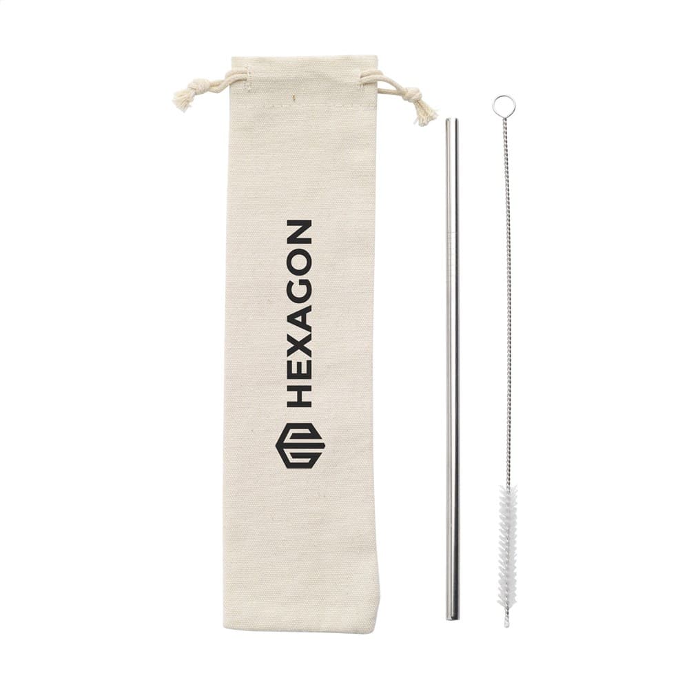 Een herbruikbaar, RVS rietje. Een goed en verantwoord alternatief voor plastic rietjes. Inclusief RVS-nylon schoonmaakborsteltje. Perfect voor koude dranken als smoothies of cocktails. Geeft bovendien een opvallende, trendy touch aan een drankje. Per set geleverd met een canvas pouch.
