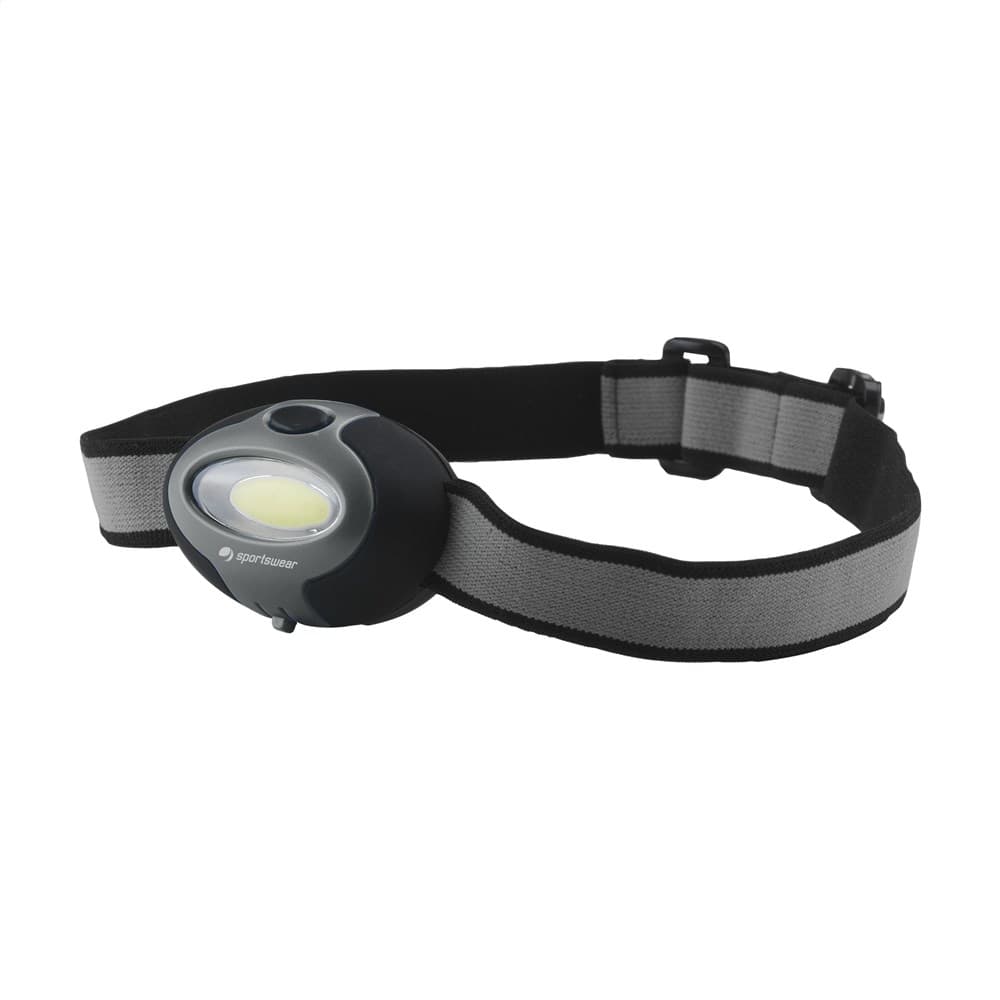 ABS hoofdlampje met COB LED. Geeft enorm fel, wit licht. Aan verstelbare, elastische band. Uiterst geschikt voor buitenactiviteiten in het donker. Incl. celbatterijen. Per stuk in doosje.