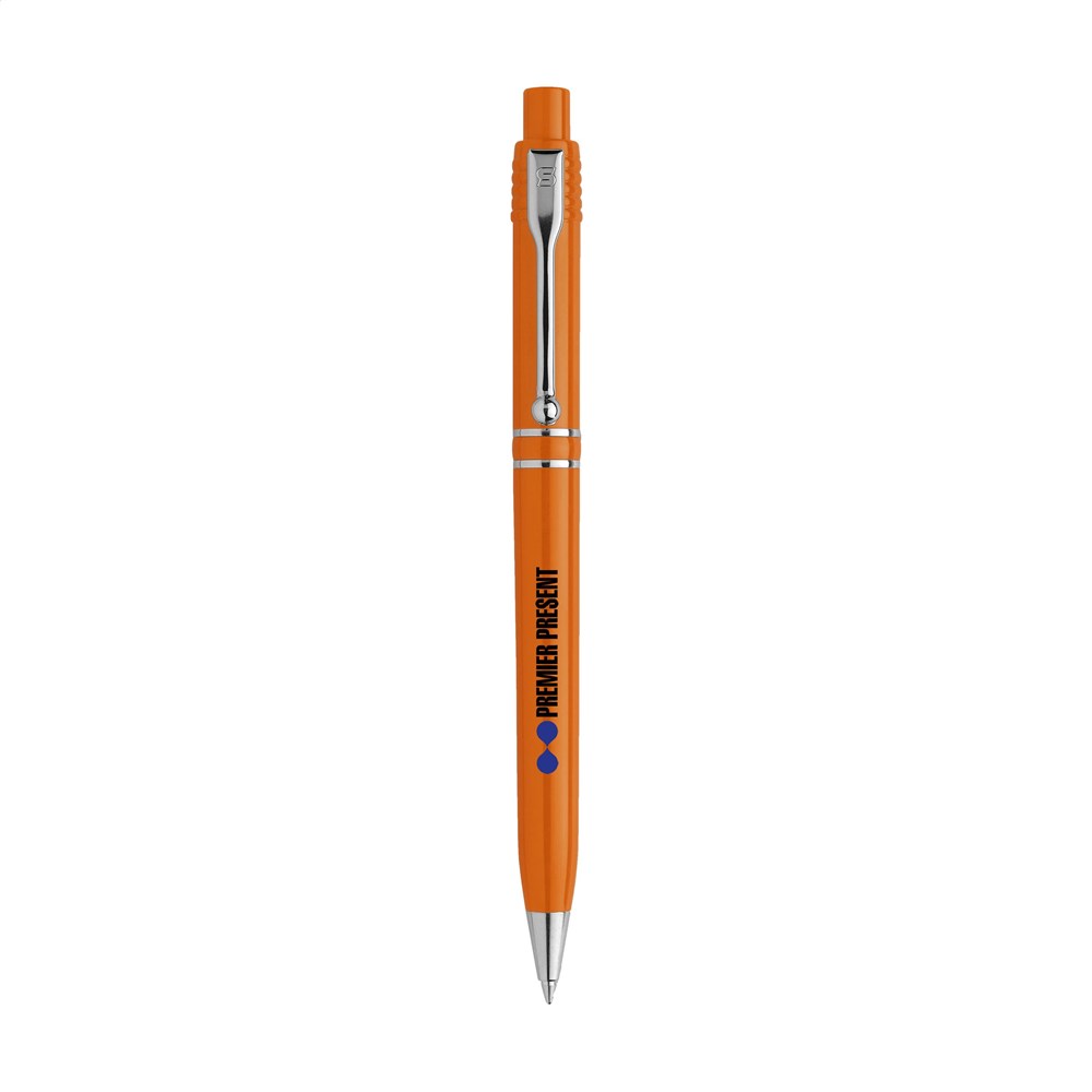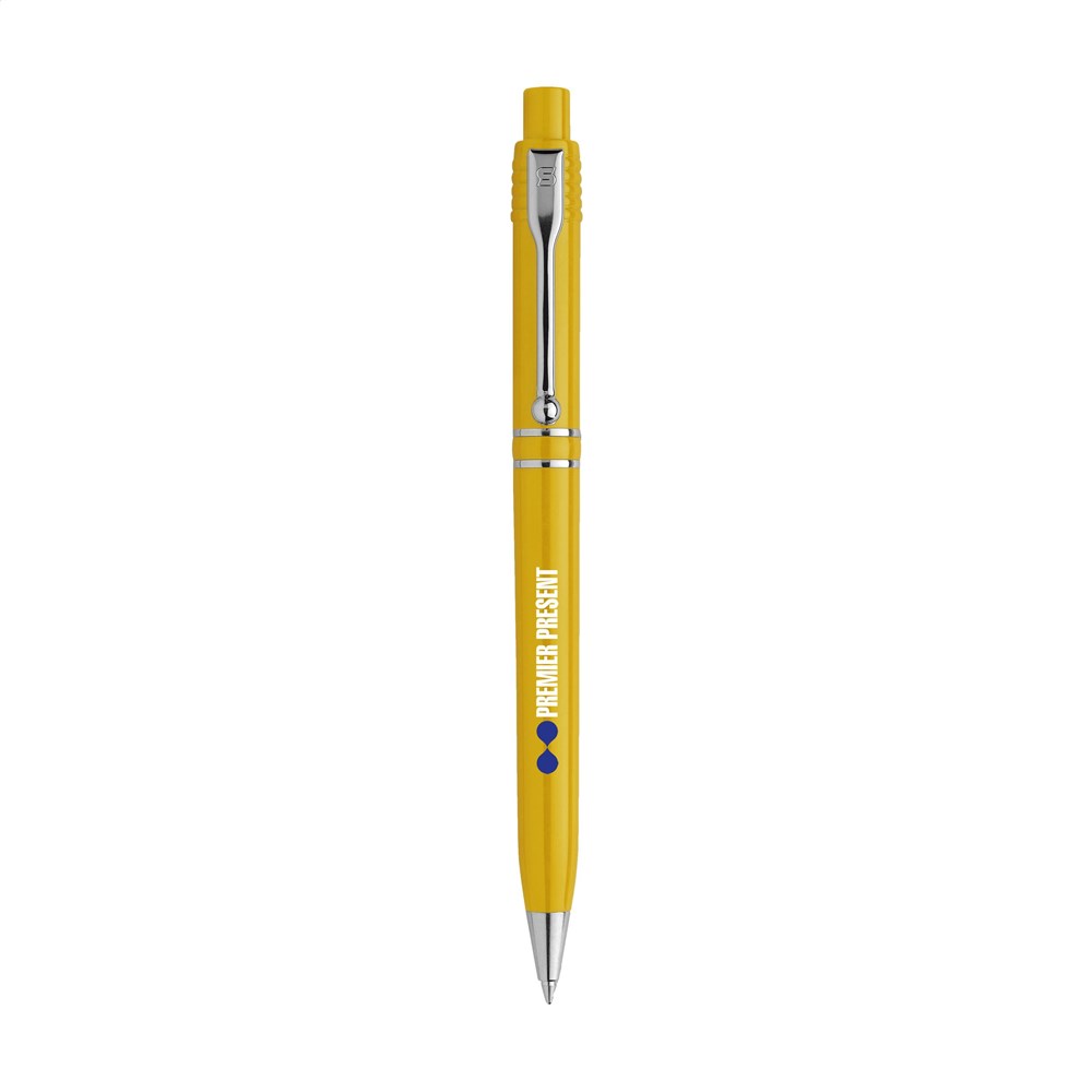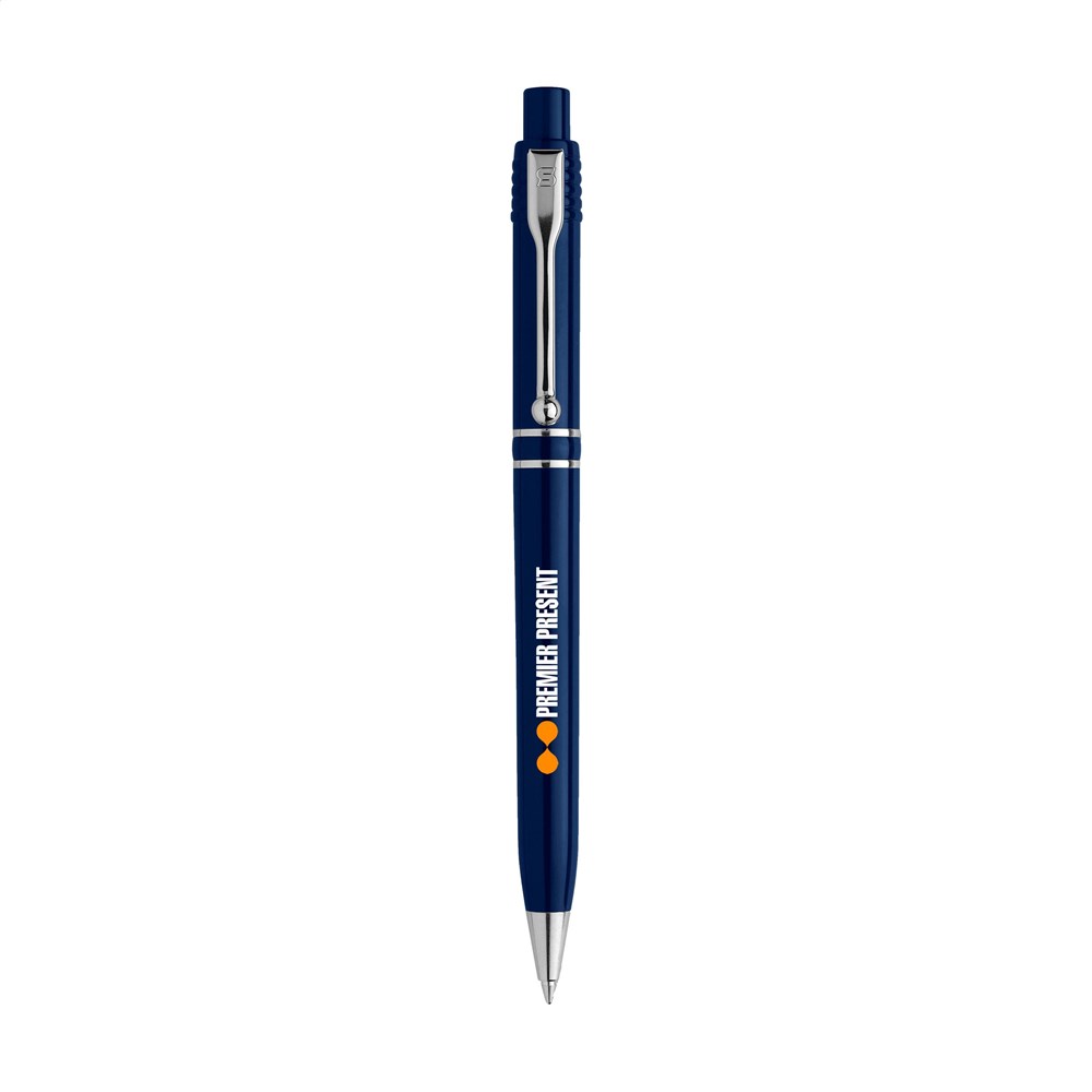 Blauwschrijvende balpen van het merk Stilolinea®. Met metalen puntstuk, clip en tussenringen. Made in Italy.