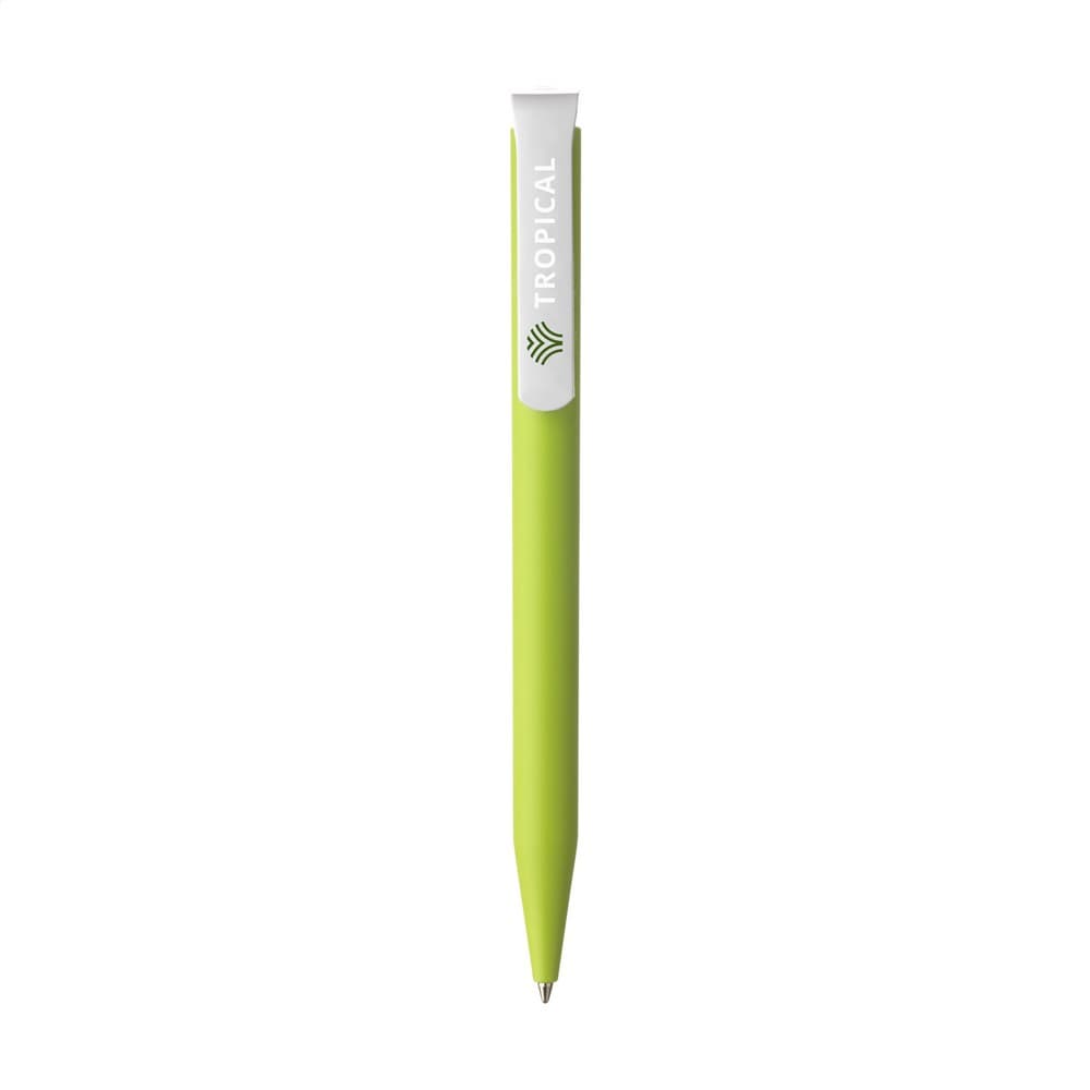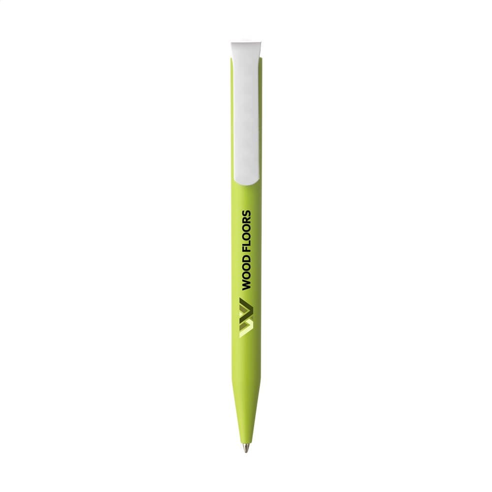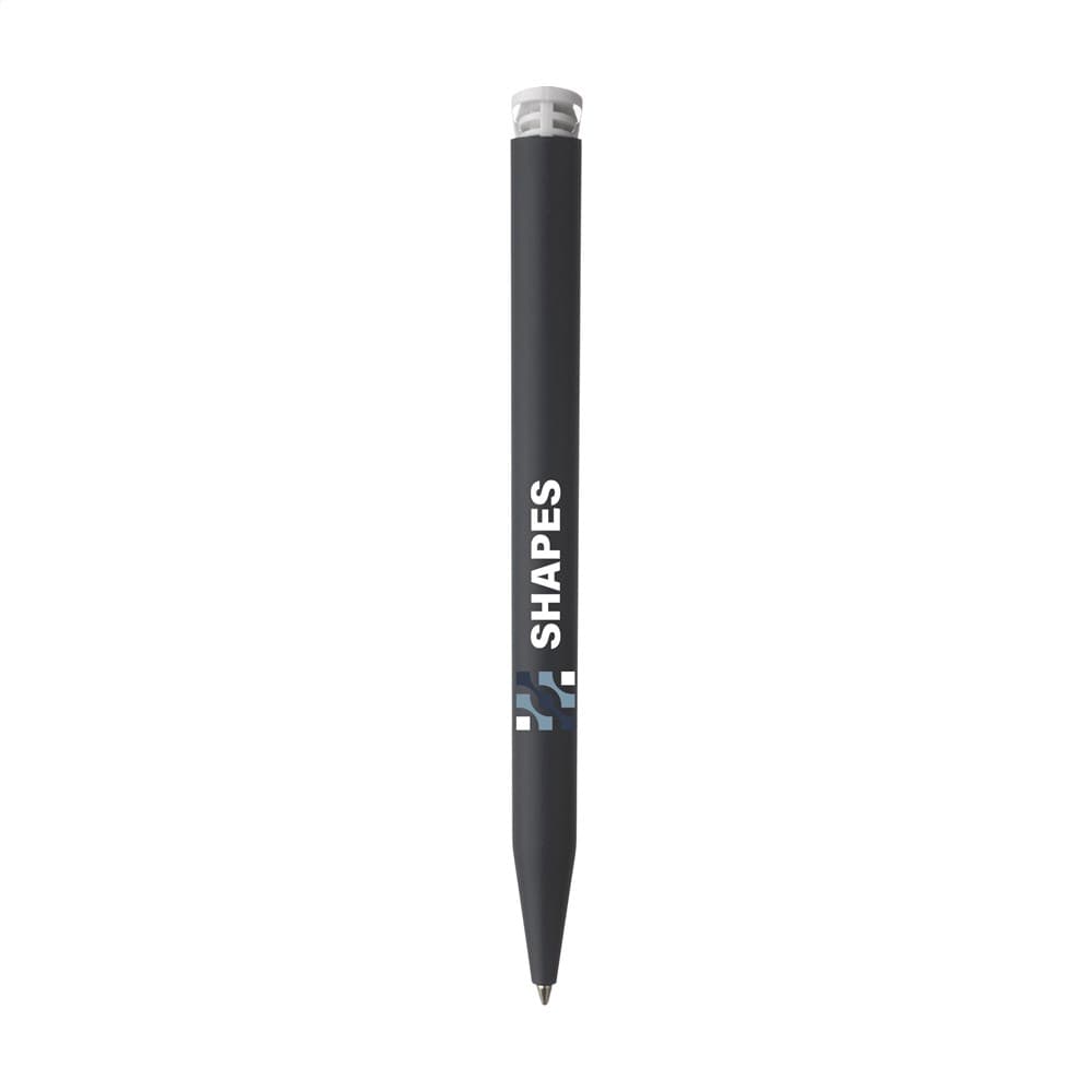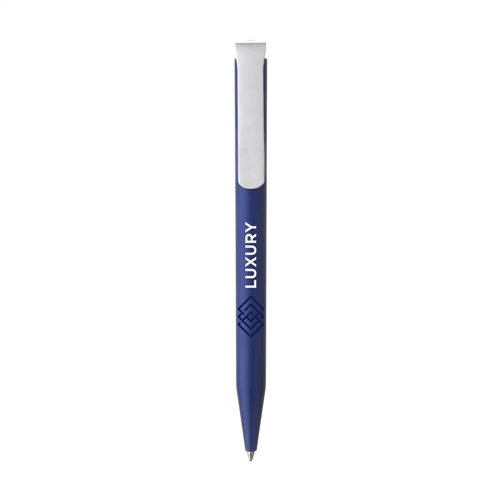Blauwschrijvende balpen van het merk Senator®. De matte houder is gemaakt van PLA granulaat op basis van suikerriet en daardoor biologisch afbreekbaar. De pen is geproduceerd met groene stroom en gecertificeerde processen volgens de milieunorm ISO 14001. Met royale clip/drukknop inclusief biodegradable logo. Made in Germany.
