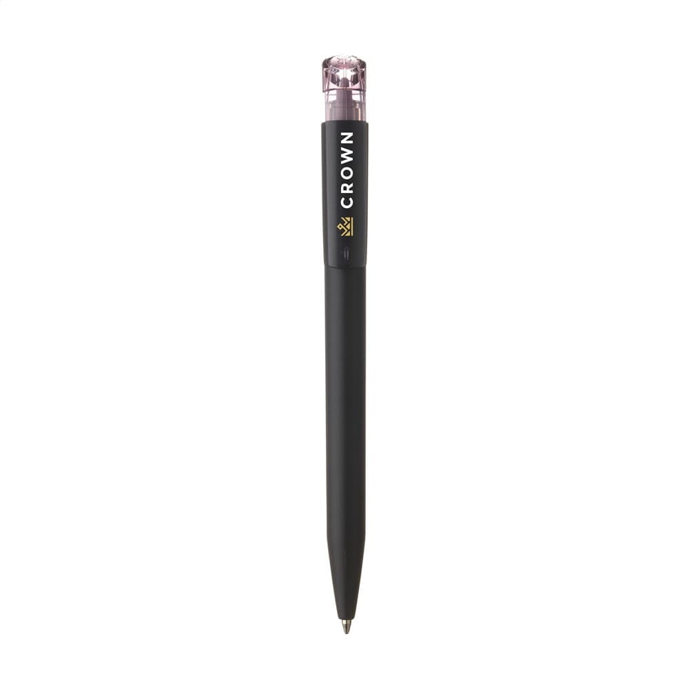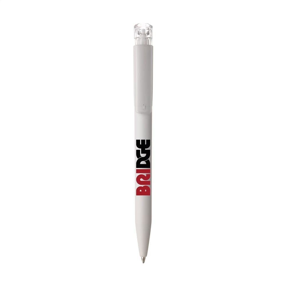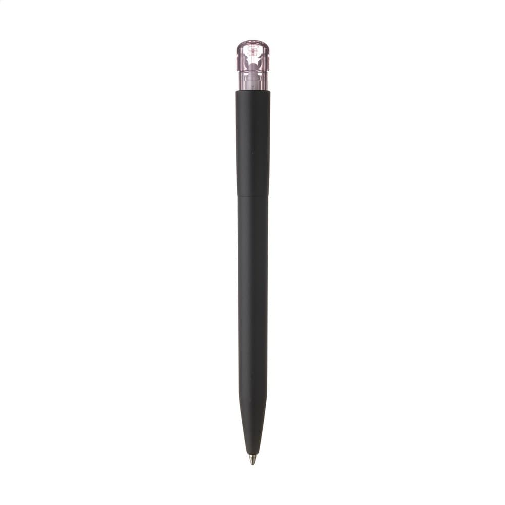ECO-vriendelijke, blauwschrijvende balpen van het merk Stilolinea®. De matte houder is gemaakt van Ingeo® PLA-plastic. Ingeo® is een plastic dat is gemaakt van plantaardige vezels, waardoor de pen voor 80% biologisch afbreekbaar en composteerbaar is. Bovendien wordt bij de productie van pennen in PLA slechts één derde van de energie vereist dan voor de productie van ABS-kunststof. Made in Italy.