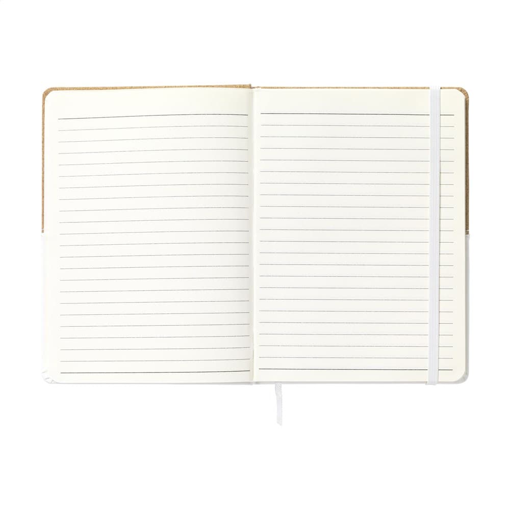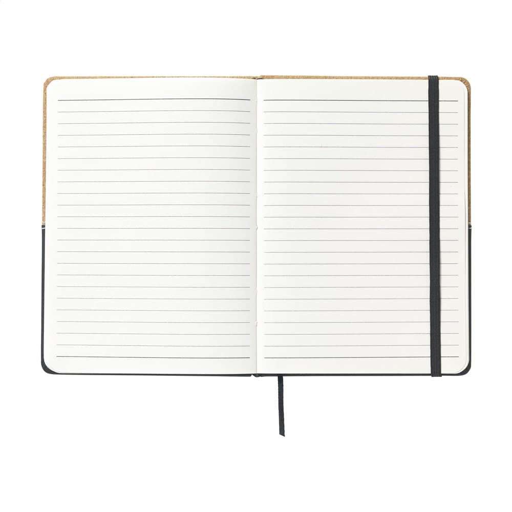 Duo stijl notitieboekje van kurk en imitatieleer in handzame en praktische uitvoering met ca. 72 vel/144 pagina's crèmekleurig, gelinieerd papier (70 g/m²) en elastische sluiting.