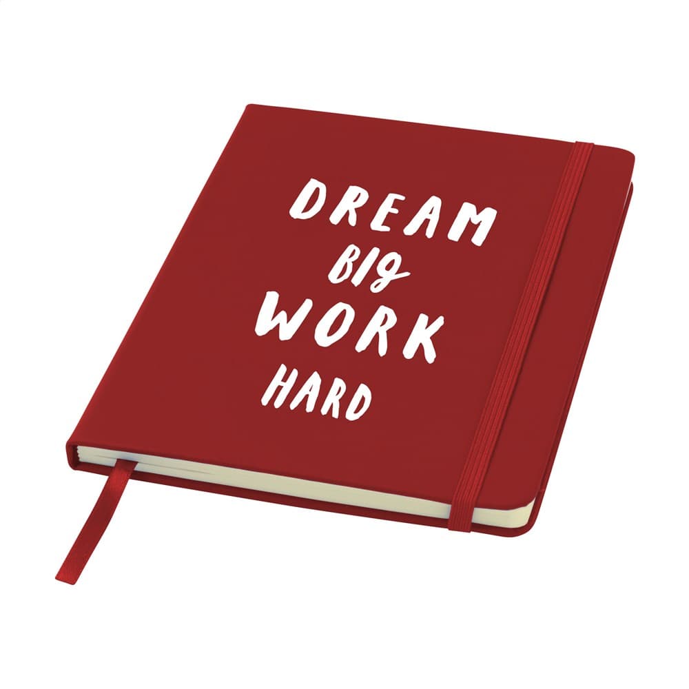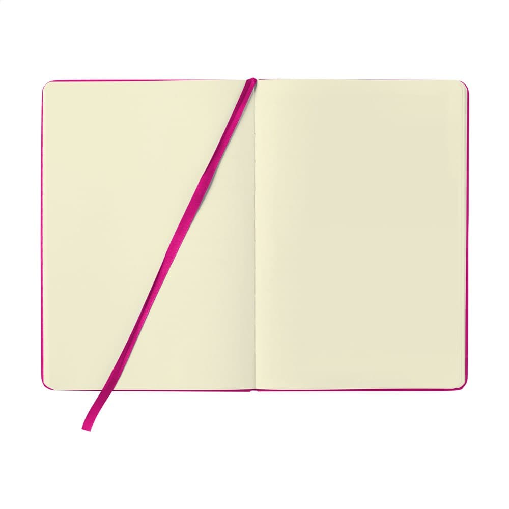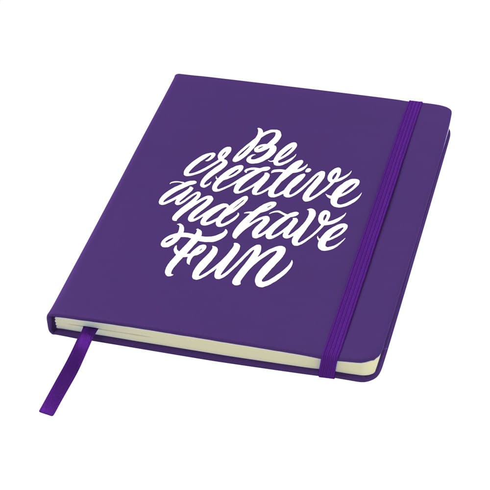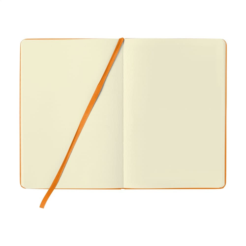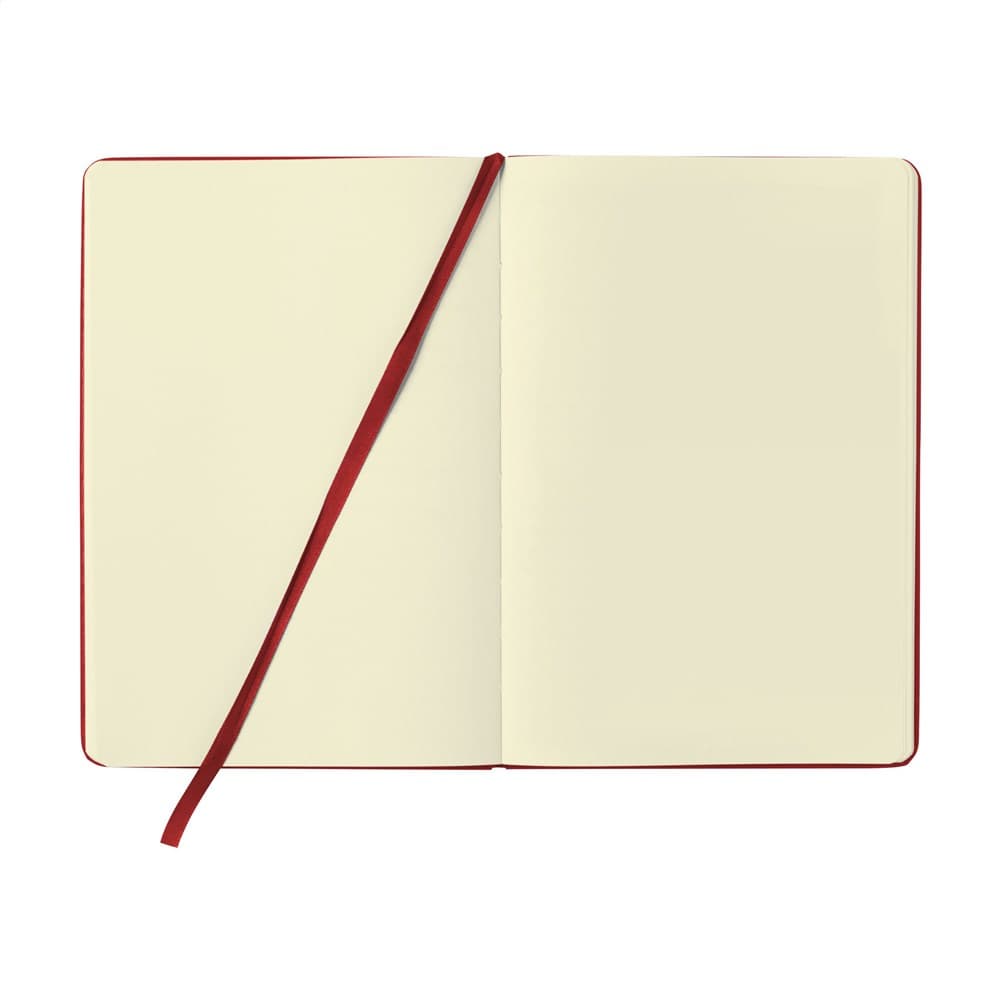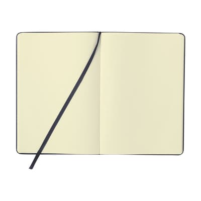 Praktisch notitieboekje in A5-formaat. Met harde PU cover, ca. 80 vel/160 pagina's crèmekleurig, ongelinieerd papier (70 g/m²), elastische sluiting en leeslint.