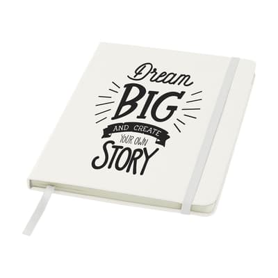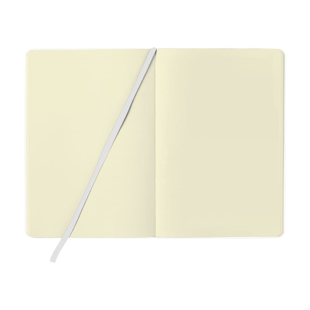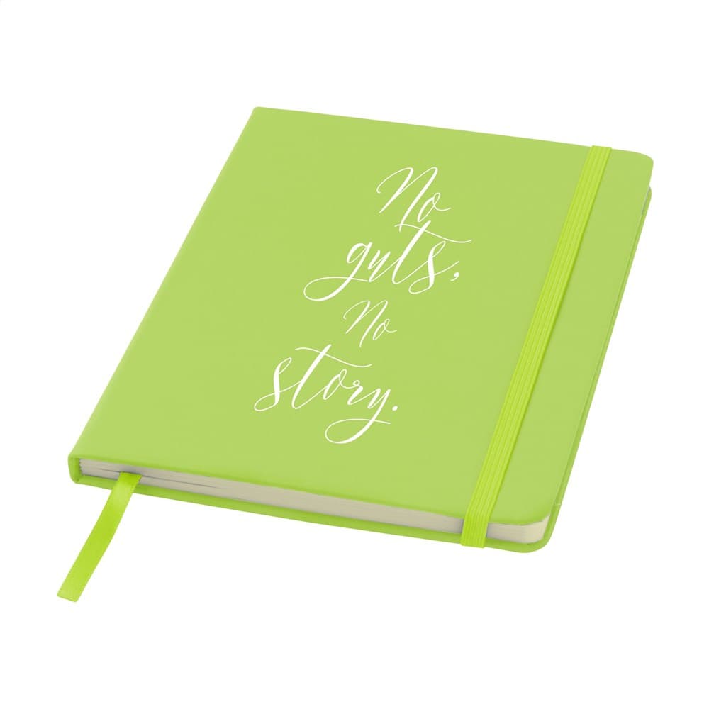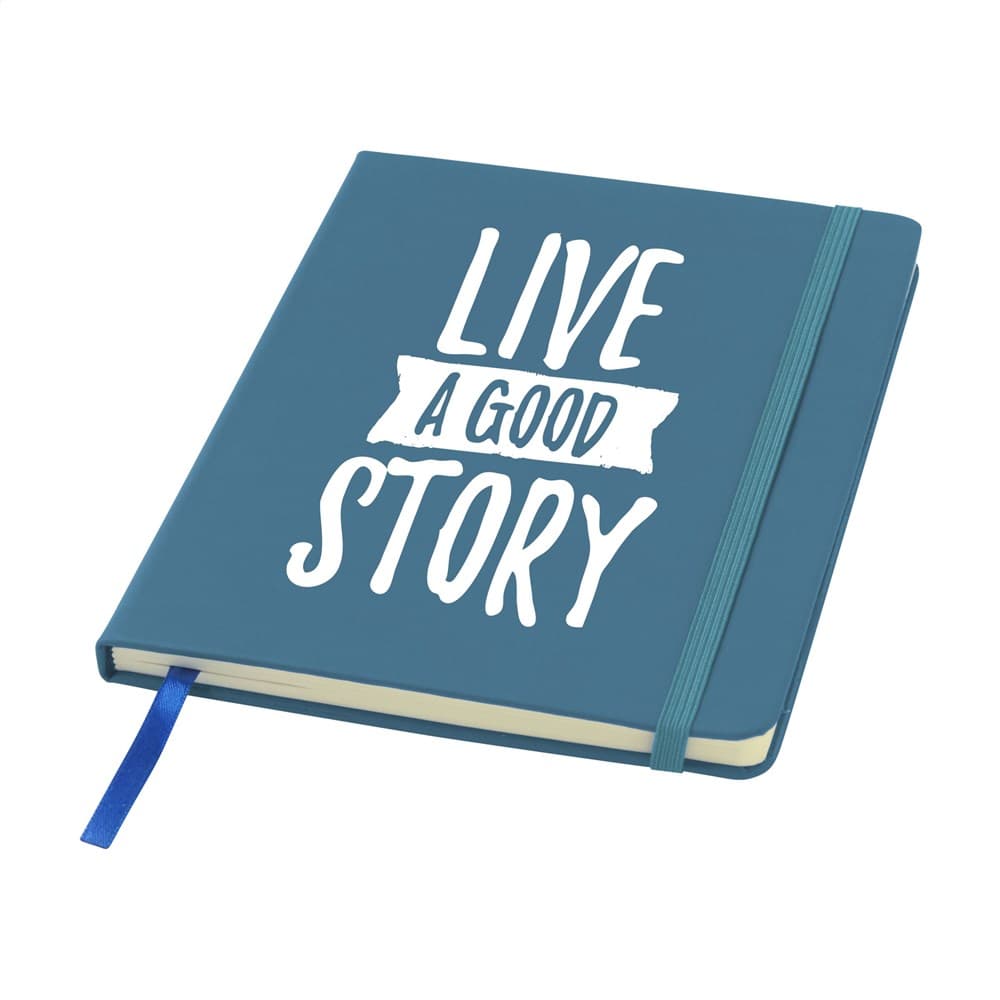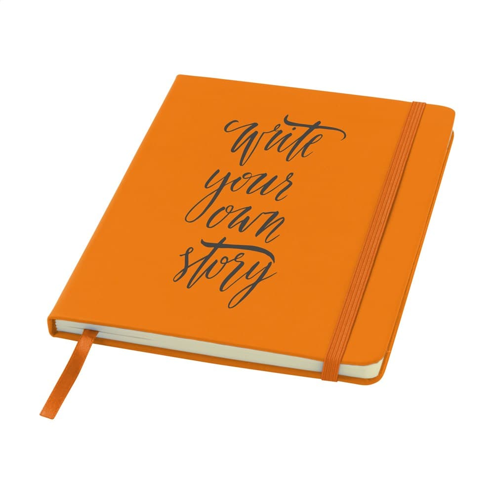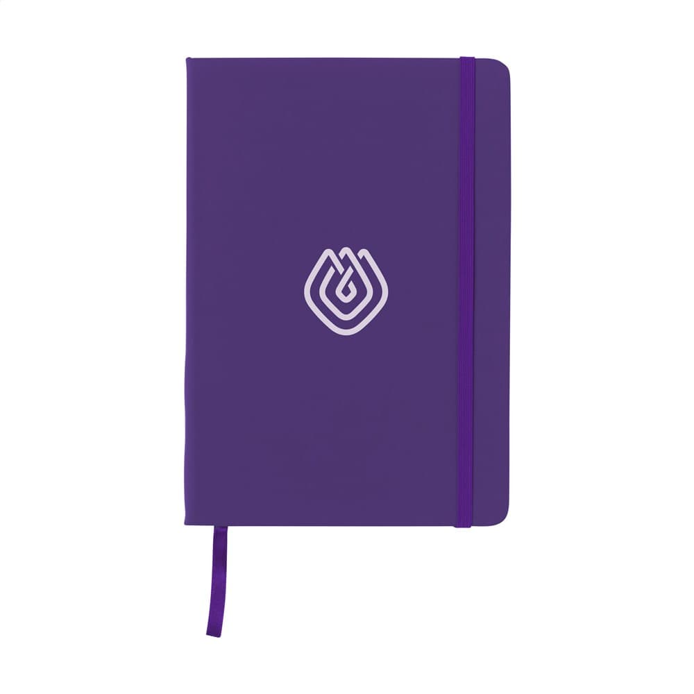 Praktisch notitieboekje in A5-formaat. Met harde PU cover, ca. 80 vel/160 pagina's crèmekleurig, ongelinieerd papier (70 g/m²), elastische sluiting en leeslint.