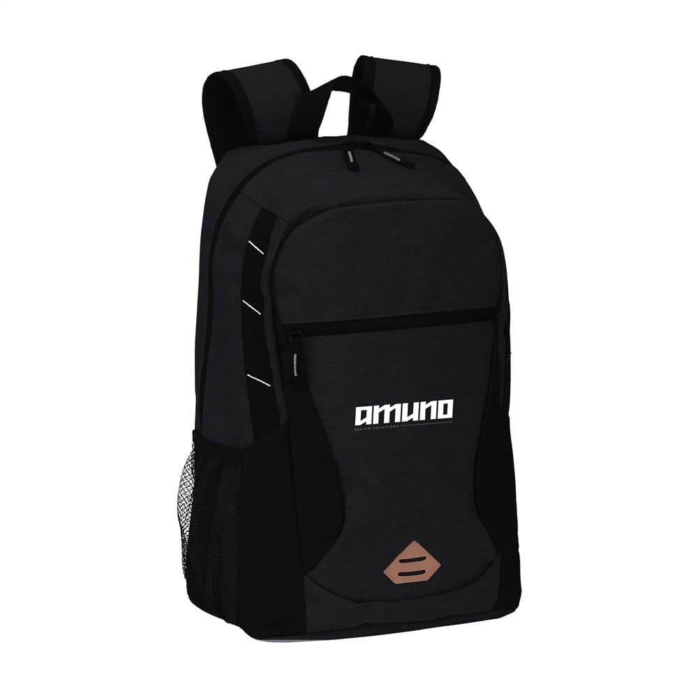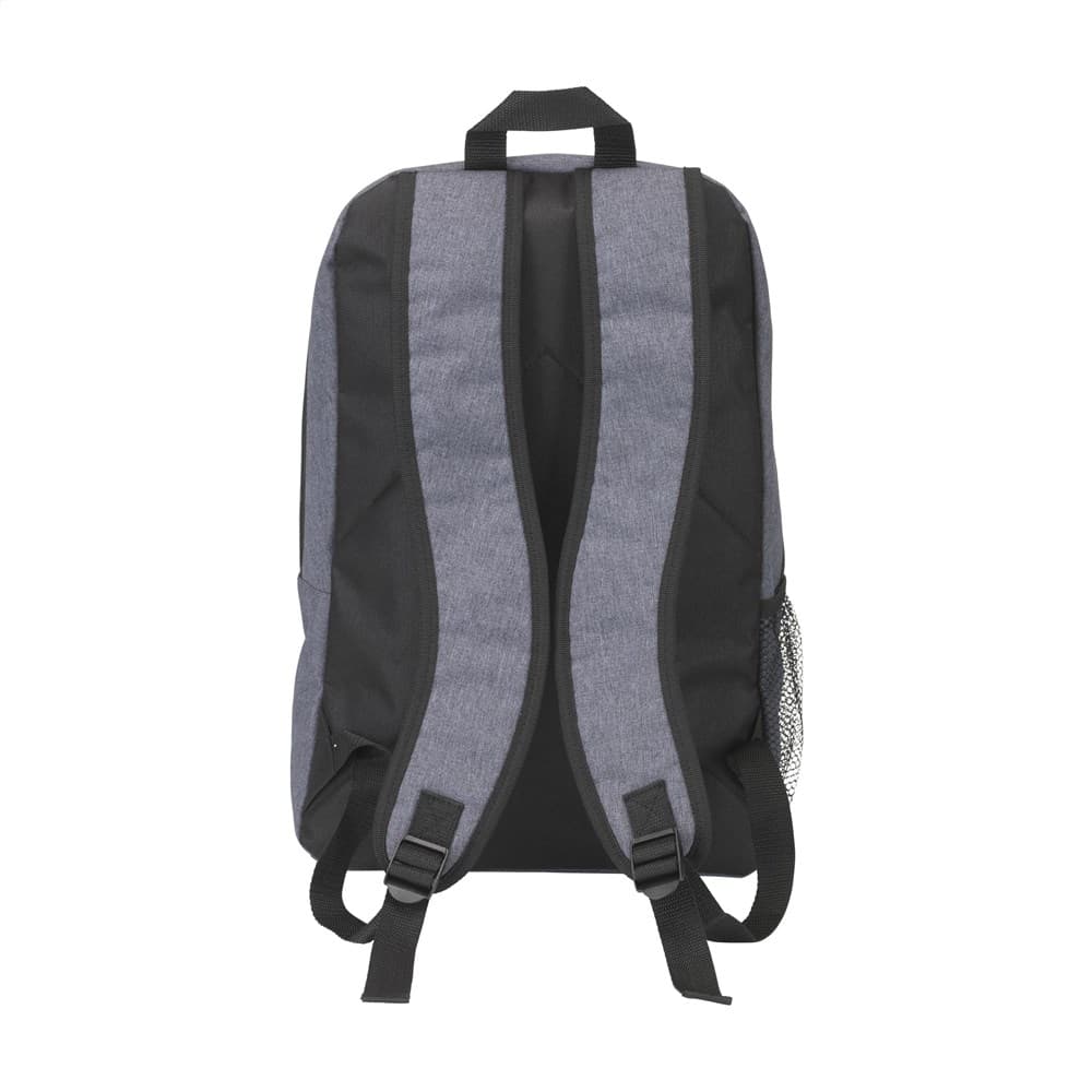 Rugzak van 600D/300D polyester. Met royaal hoofdvak, voorvak met rits, gaasvak, verstelbare, gewatteerde mesh schouderriemen, gewatteerde rugzijde en draaglus.