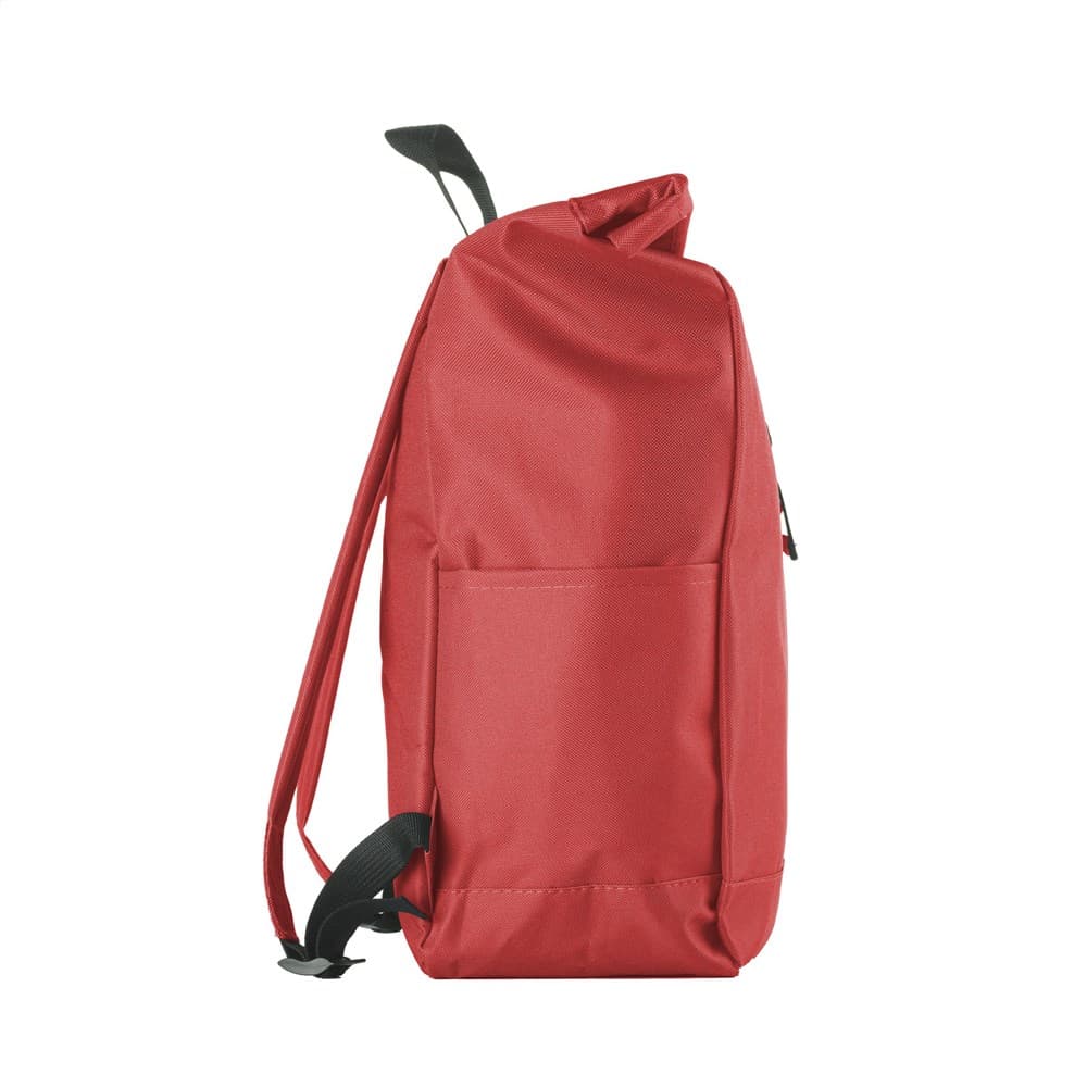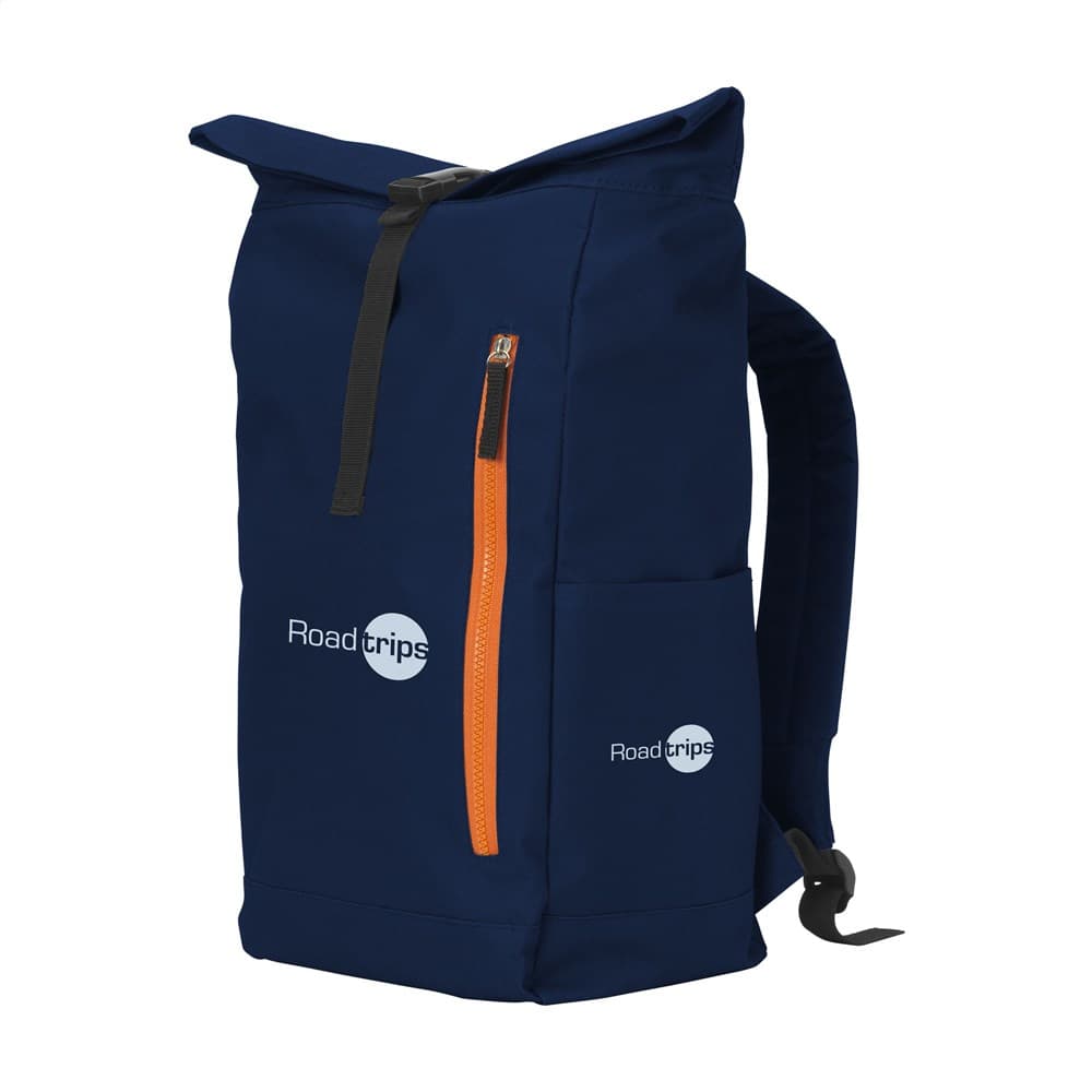 Stoere, praktische urban rugzak van sterk 600D polyester met waterbestendige PVC binnenzijde, gedeeltelijk nylon gevoerd. De rugzak heeft één groot binnenvak, een insteekvak aan beide zijdes en een groot ritsvak aan de voorzijde. Met foam rugzijde voor meer draagcomfort, gewatteerde, verstelbare schouderriemen en draaglus. Met oprolbare sluiting en handig kliksysteem. De perfecte tas voor dagelijks gebruik. Inhoud ca. 18 liter.