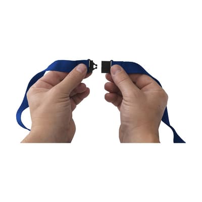 Polyester lanyard met metalen karabijnhaak en veiligheidssluiting.