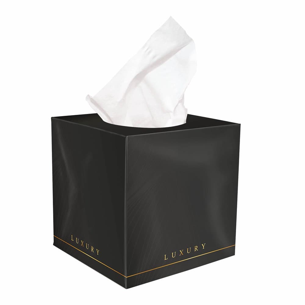 Vierkante tissue box met foliedruk, gevuld met 50 3-laags tissues. Laat je tissues bedrukken door De PennenBoer.