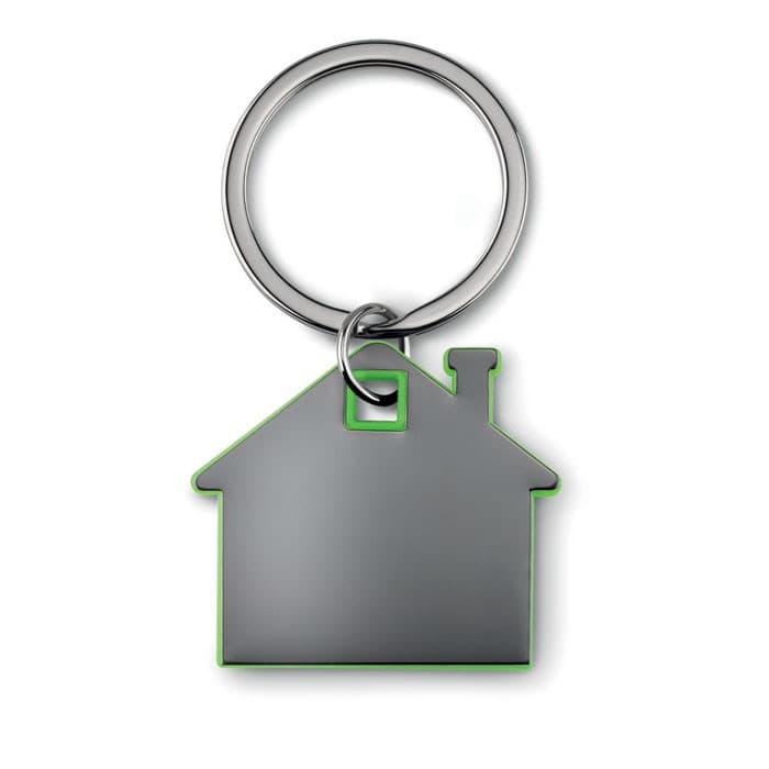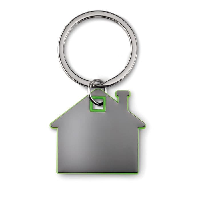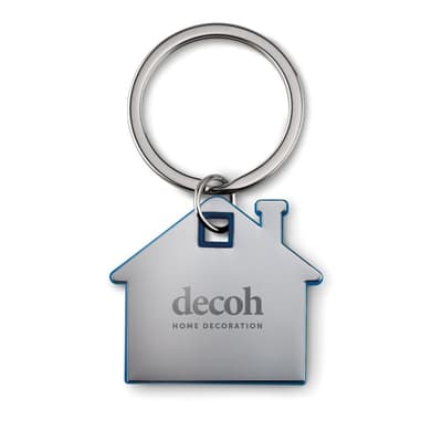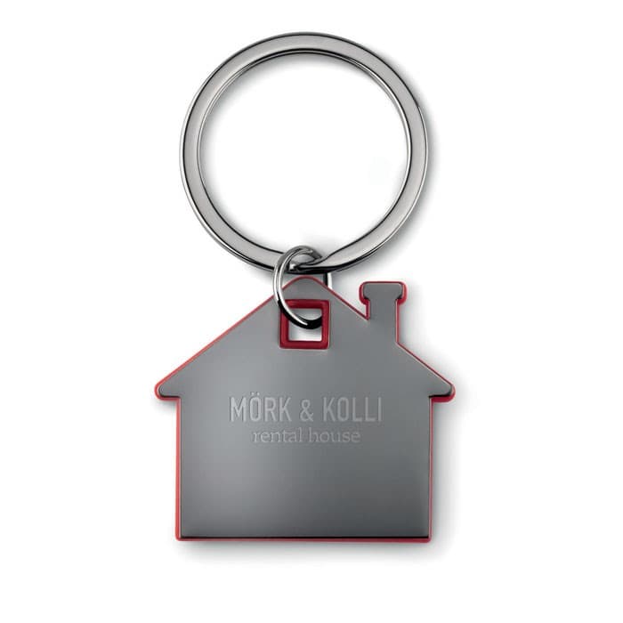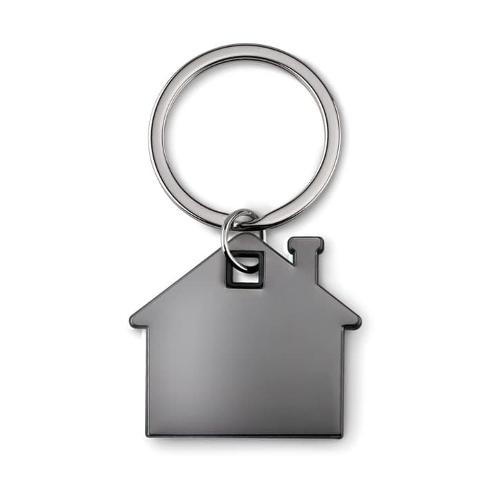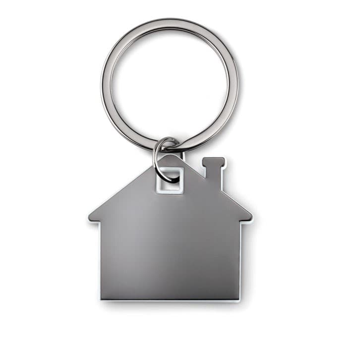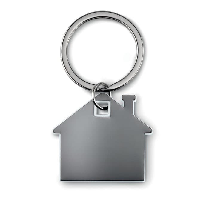 Huisvormige sleutelhanger van roestvrijstaal en ABS.