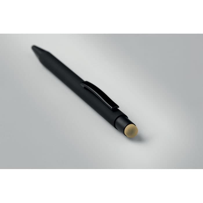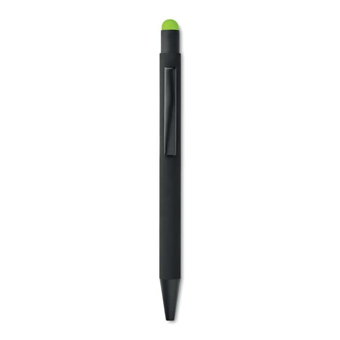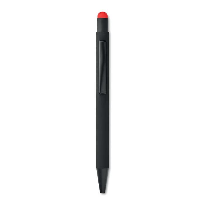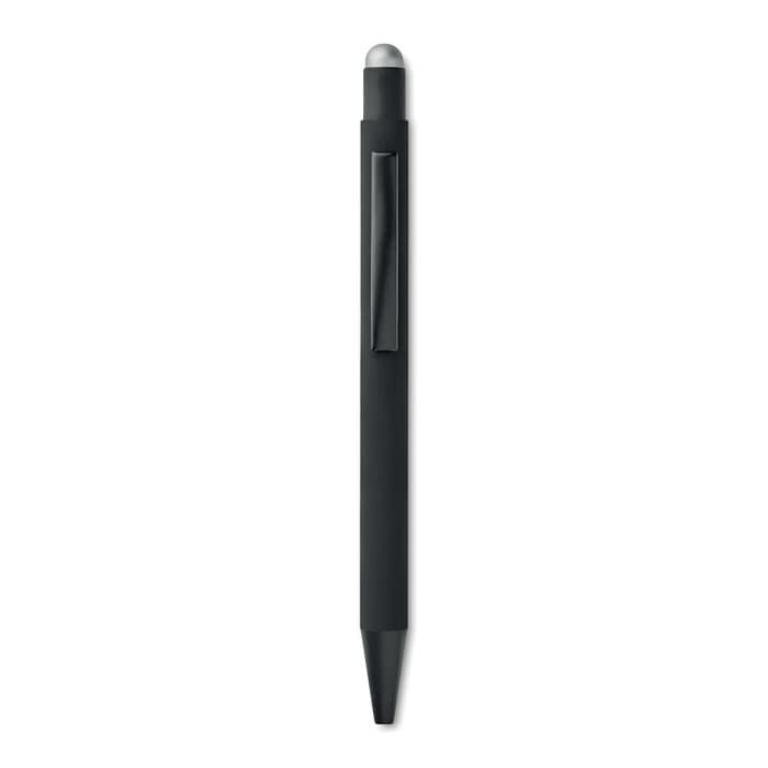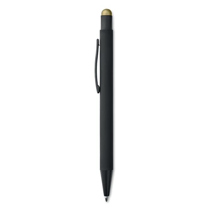 Aluminium stylus balpen met touch tip en drukmechanisme, ideaal voor touchscreen pennen bedrukken. Bij graveren verschijnt de kleur van de touch tip. Voorzien van blauwe inkt.