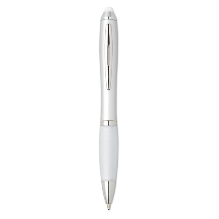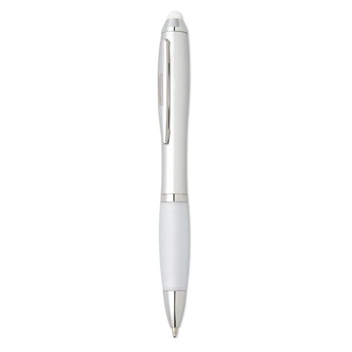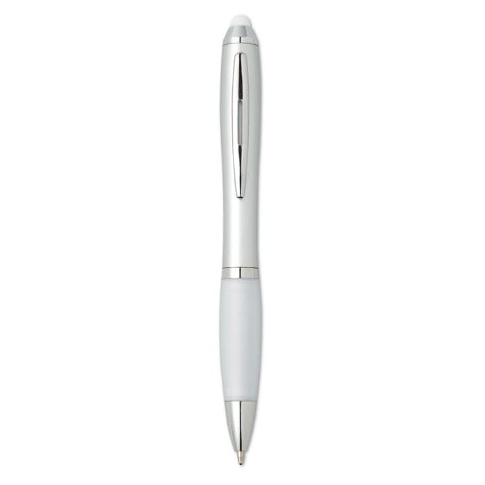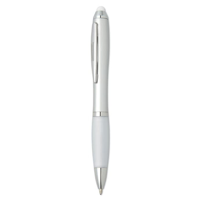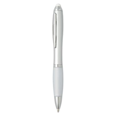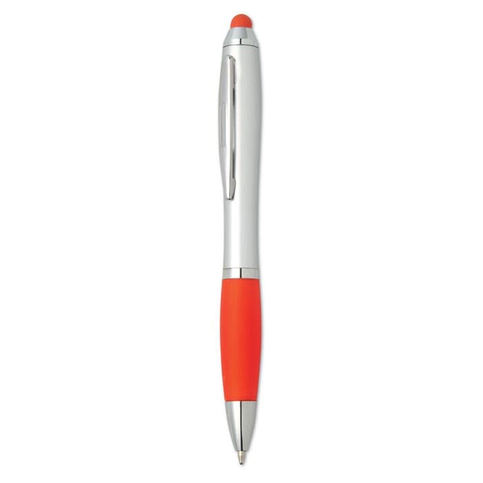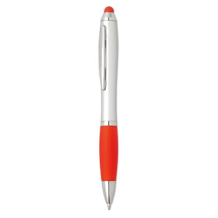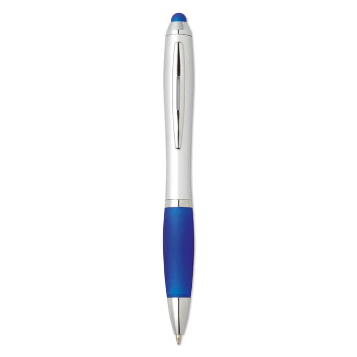 Kunststof balpen met zachte grip en bijpassende touch tip. Draaimechanisme en blauwe inkt.