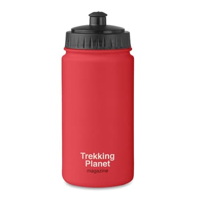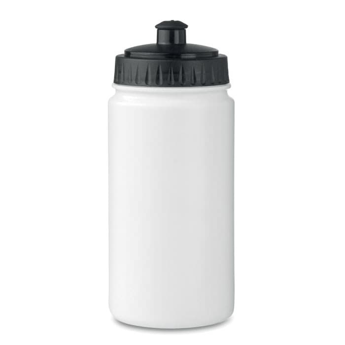 PE kunststof, BPA-vrije drinkbidon. Inhoud 500 ml. Heel handig voor op het sportveld. Lekvrij.