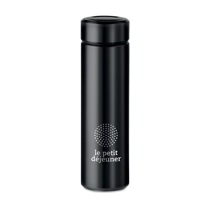 Dubbelwandige vacuüm geïsoleerde RVS drinkfles met uitneembare theezeef. Inhoud 425 ml. Lekvrij.