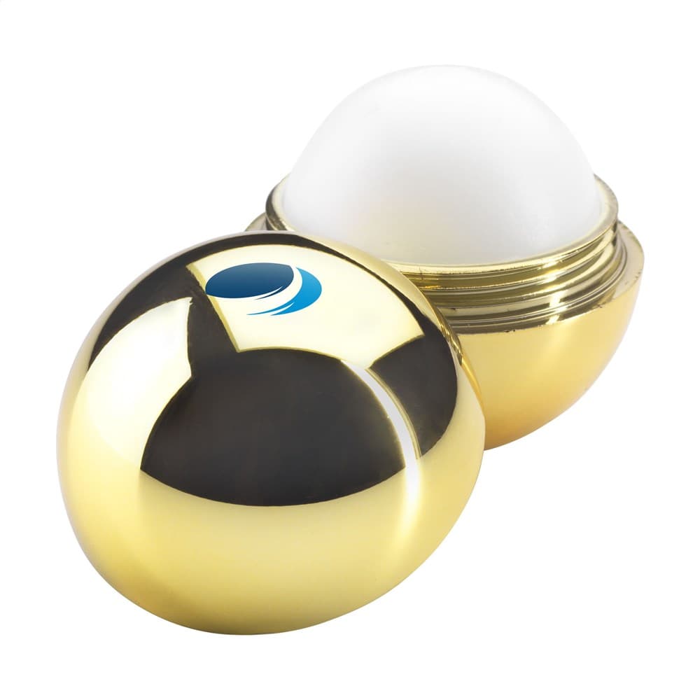 Lippenbalsem in ronde, glossy houder. Geen Sun Protection Factor. Ingrediënten: Petrolatum, Paraffinum Liquidum, Ozokerite, Polyisobutene, Butyrospermum Parkii Butter, Hydrogenated Microcrystalline Cera, Cera Alba, Hydrogenated Palm Acid, Stearyl Stearate, Tocopheryl Acetate, Parfum, Citric Acid, Methylparaben, Propylparaben, Benzyl Alcohol, Limonene. Advies: Gebruik bij de bedrukking van de gouden versie (0743.02) geen donkere kleuren, deze zijn na het printen nauwelijks zichtbaar.