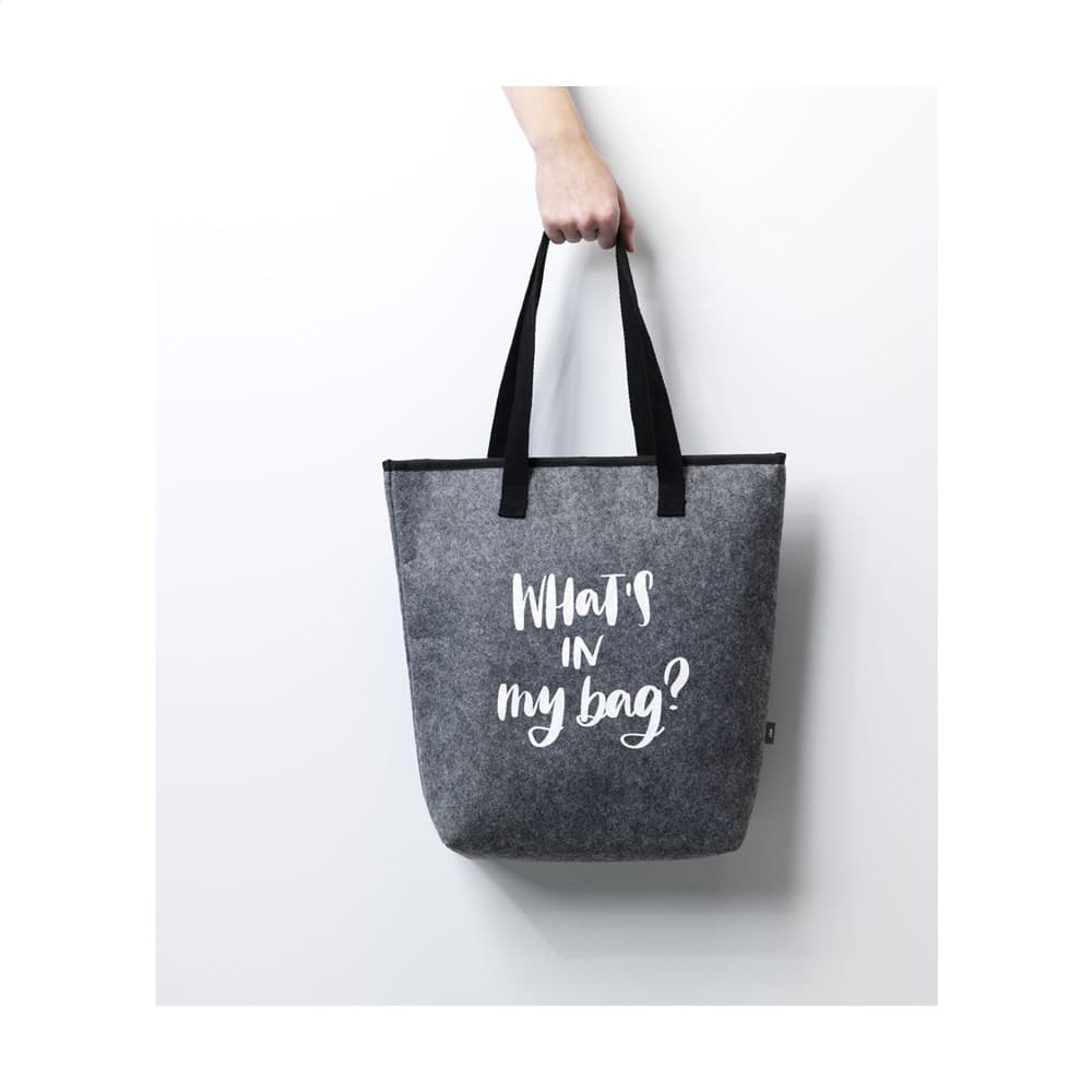 WoW! Royale koeltas van RPET vilt (gemaakt van gerecyclede PET-flessen). Met isolerende, aluminium binnenzijde. Deze shopper heeft een handige klittenbandsluiting en draaglussen. Zeer geschikt voor het vervoeren van diepvriesproducten. Inhoud ca. 15 liter. Perfect voor tassen bedrukken.