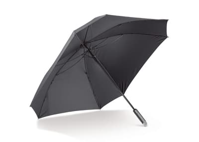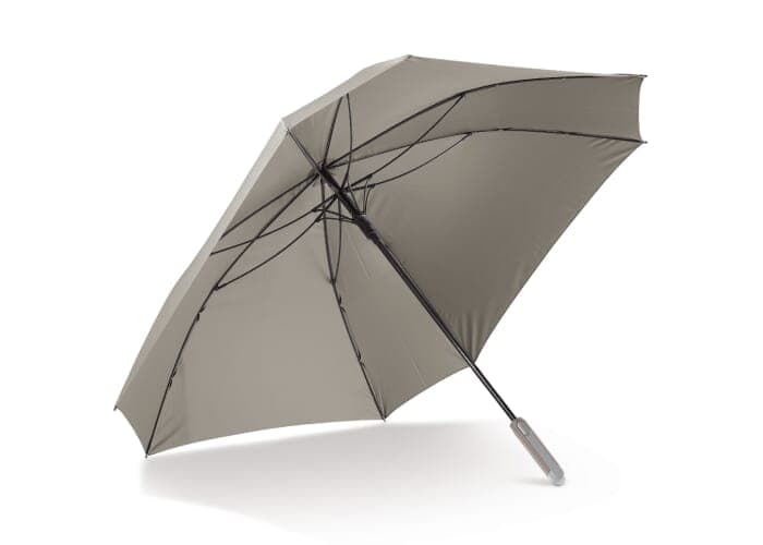 Reis in stijl met deze grote en luxe paraplu. Het stijlvolle vierkante ontwerp creëert een groter oppervlak waardoor deze paraplu groot genoeg is voor twee personen. Het frame opent automatisch, is volledig van sterk glasvezel en windproof. Eenvoudig mee te nemen middels de hoes met schouderband.
