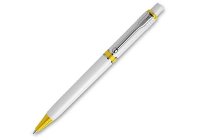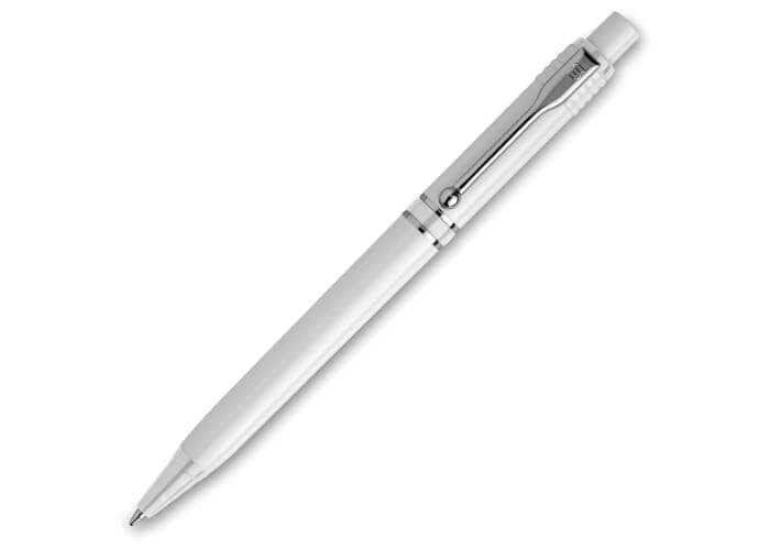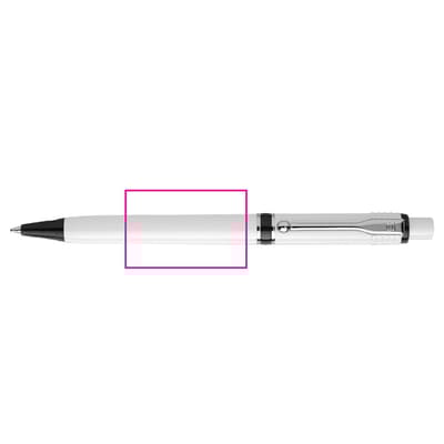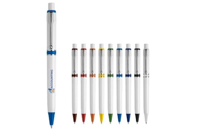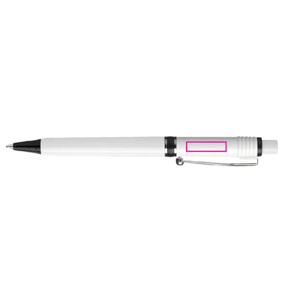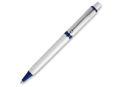 Een van de meest populaire modellen van Stilolinea is de hardcolour Raja balpen met witte barrel en gekleurde tip en ring. De pen bevat een Jumbo vulling met blauw schrijvende inkt. Het heeft een drukmechaniek en is gemaakt van metaal en ABS kunststof. Geproduceerd in Europa. Kleur combinaties voor deze pen zijn mogelijk vanaf 5.000 stuks.