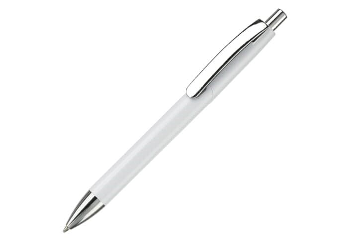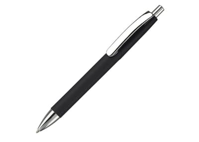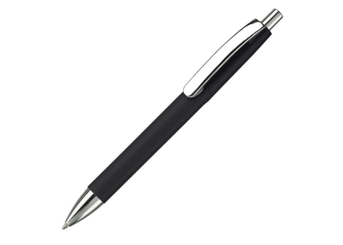Kunststof hardcolour balpen met blauwschrijvende Jumbo vulling, metalen clip en gemetalliseerd onderstuk en drukker.
