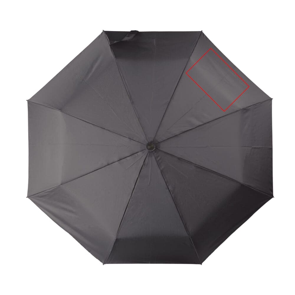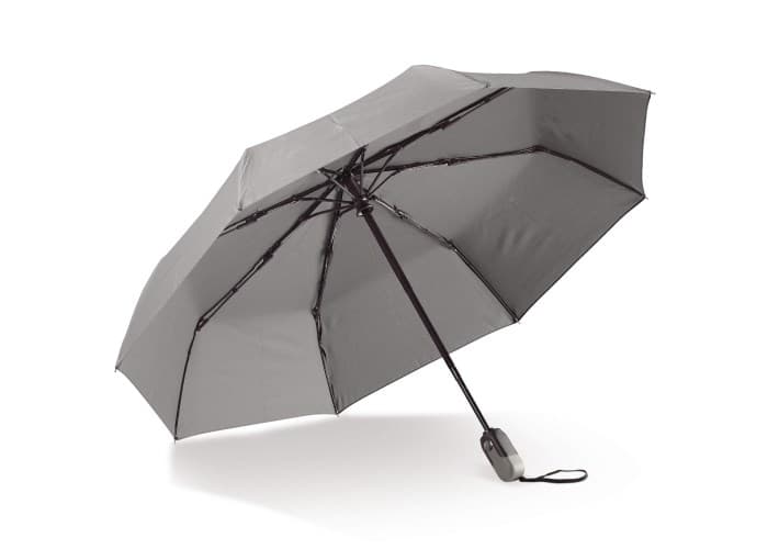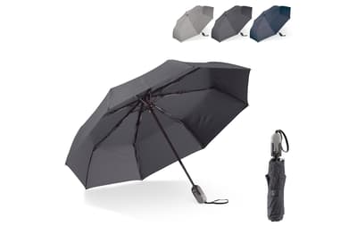 Luxe opvouwbare paraplu van Pongee polyester met een zakelijke uitstraling. Het ergonomisch gevormde handvat bevat een mechanisme om de paraplu automatisch te openen en weer ter sluiten. Het frame is deels van glasvezel dat de paraplu extra sterk maakt. Wordt in een hoesje geleverd.