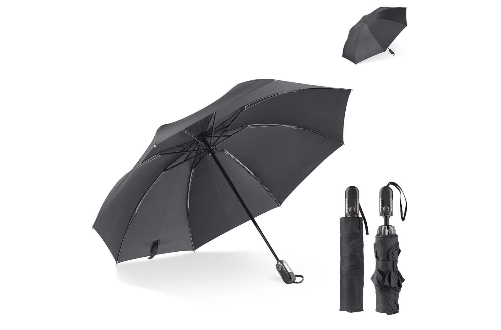 Stap droog in de auto. Deze reversible paraplu vouwt zich zo op dat waterdruppels ingesloten worden bij het sluiten. Zo houd je jezelf en de auto droog. Deze paraplu opent en sluit automatisch en is voorzien van glasvezel ribben. De paraplu is gemaakt van Pongee polyester.