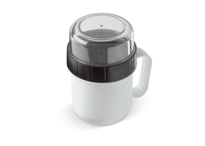 Ideale beker met twee compartimenten. De grote drinkbeker voor uw yoghurt of soep en het kleine compartiment voor de muesli, fruit of croutons. Zo blijft alles heerlijk vers en knapperig.