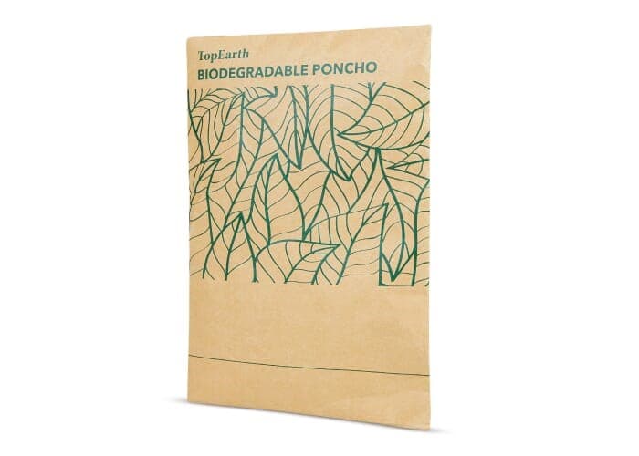 Biologisch afbreekbare poncho van bio PE kunststof. Deze poncho wordt binnen twaalf maanden op natuurlijke wijze afgebroken. Poncho: 127x100cm.