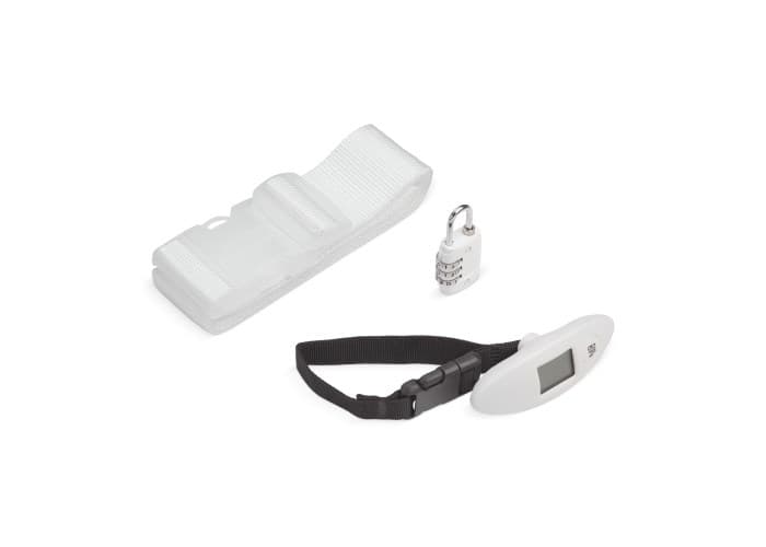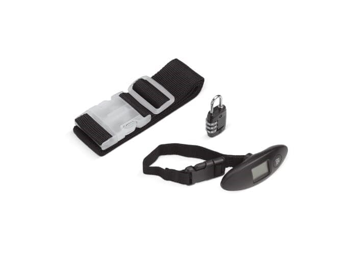Ga goed voorbereid op reis met deze drie-delige reisset. Met de kofferweger behoort betalen voor extra kilo's tot de verleden tijd. Met de kofferband en het slot blijven eigendommen veilig opgeborgen.