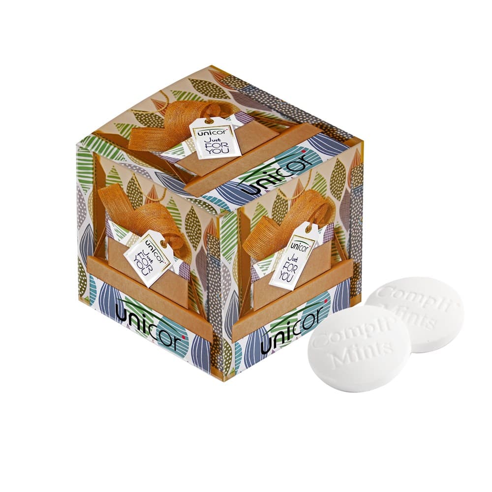 Doosje voorzien van een all-over full colour bedrukking, gevuld met ca. 17 gram Compli'mints