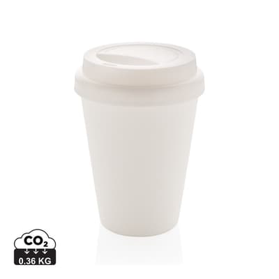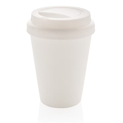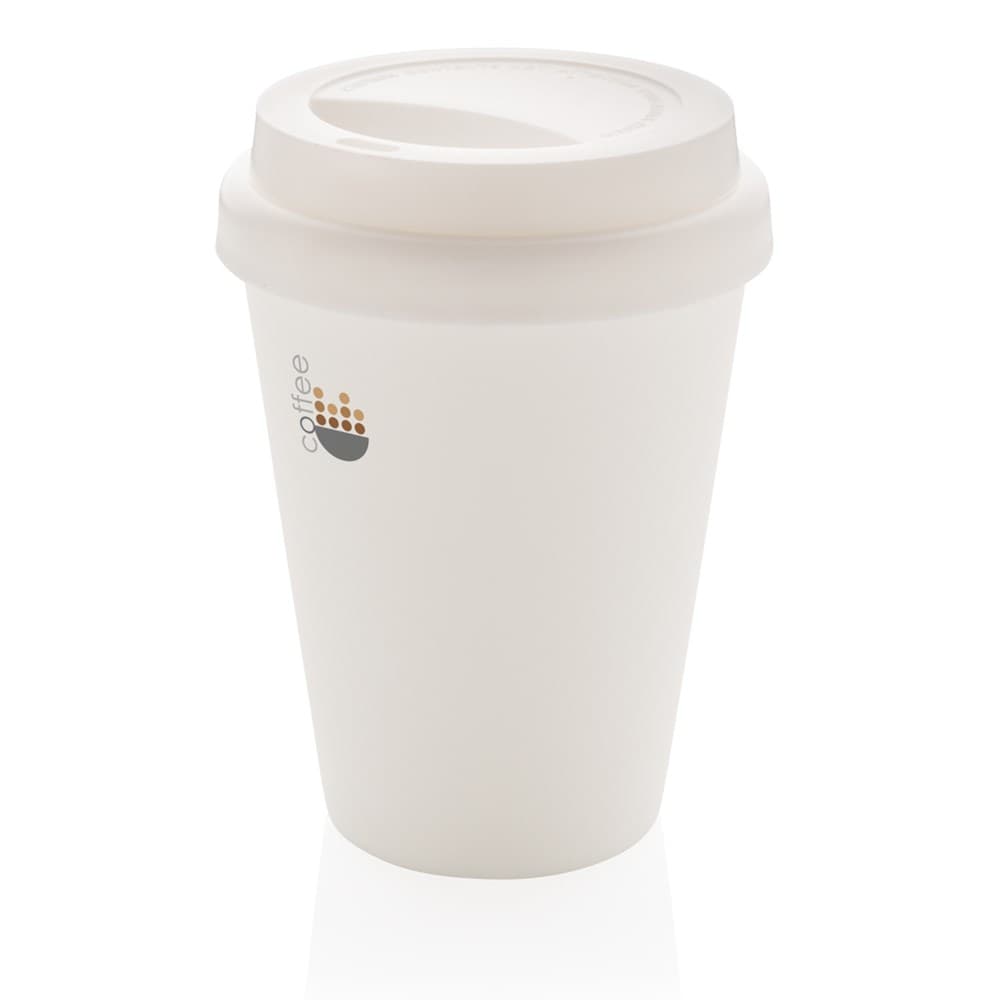 Stop met het gebruik van wergwerpartikelen! Breng je eigen beker mee en draag bij aan een wereld zonder wegwerpartikelen. Deze lichtgewicht en duurzame bekers zijn perfect voor je koffie onderweg. Deze koffiebeker is dubbelwandig, zodat je drank langer warm blijft. Herbruikbaar en gemaakt van 100% recyclebaar vriendelijk PP-materiaal. 100 graden Celsius voedselveilig goedgekeurd. De bekers hebben een schroefdeksel; dus geen risico dat de deksel eraf valt. Alleen handwas. Inhoud: 300 ml.
