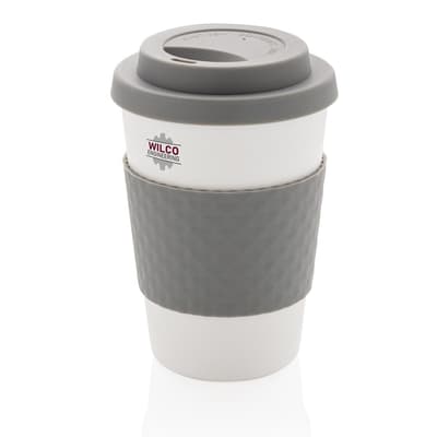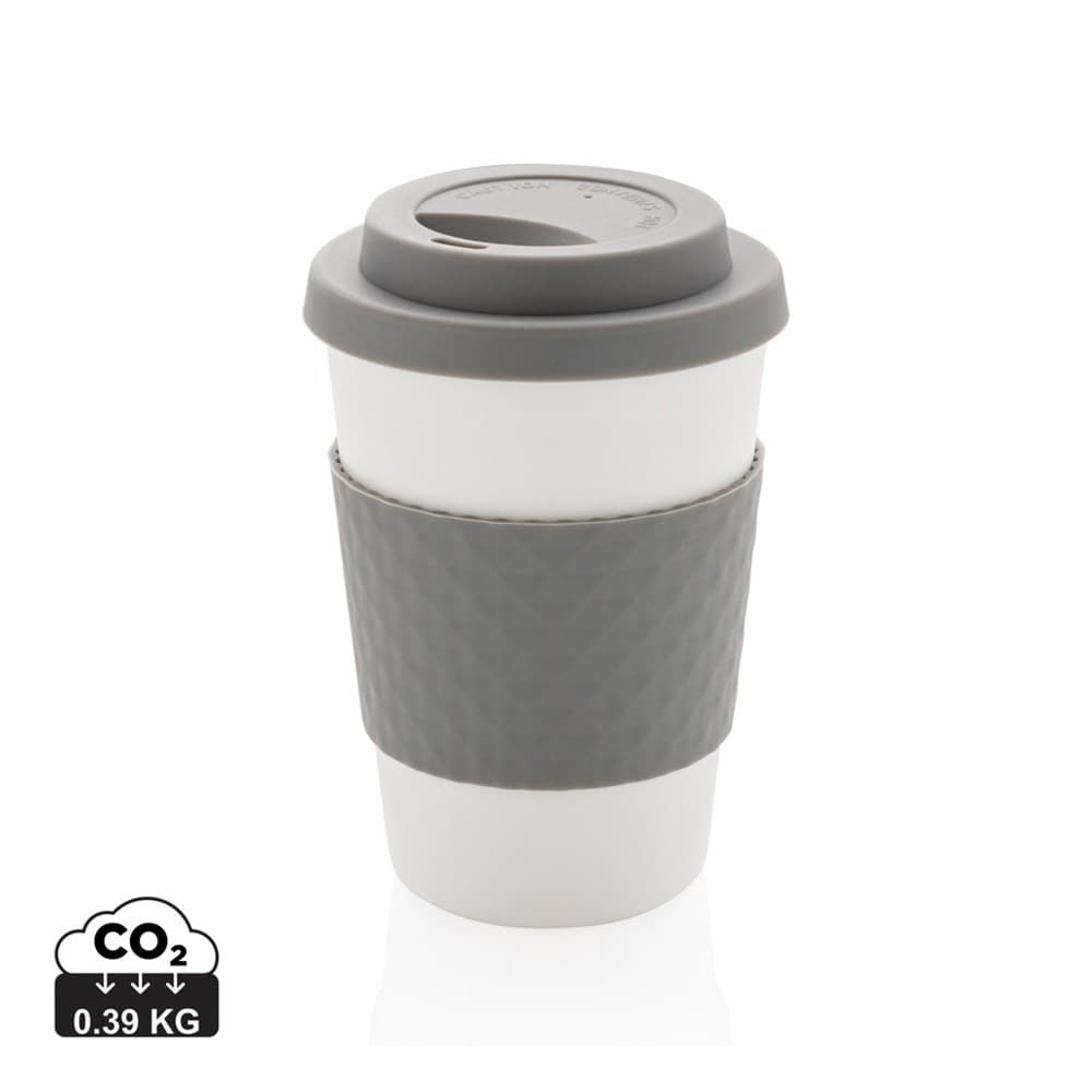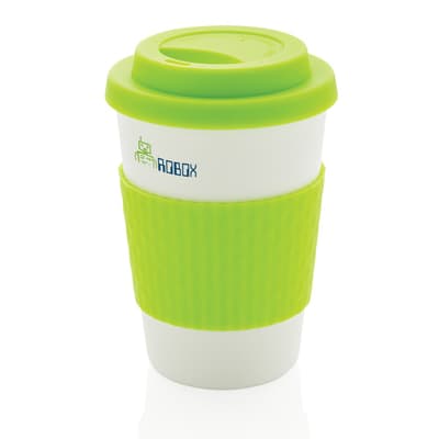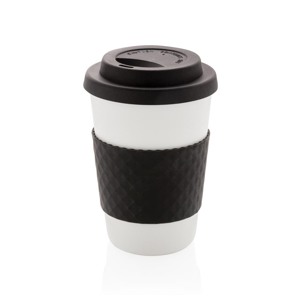 Compacte, dubbelwandige geïsoleerde beker met draaideksel. Past onder de meeste koffiezetapparaten.