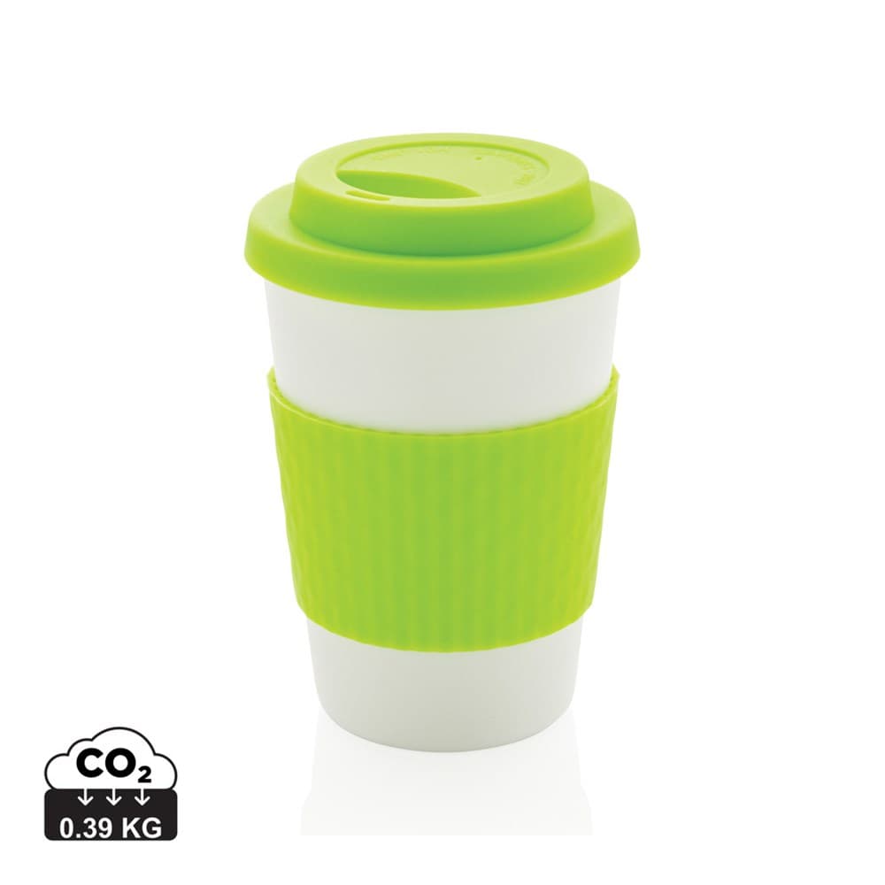 Koffiebeker geschikt voor warme dranken. Metaal van buiten en kunststof van binnen. Wordt in geschen