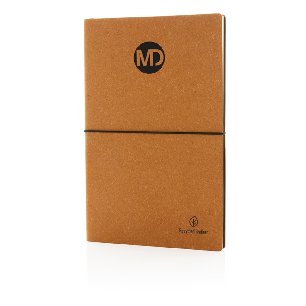Wees milieubewust zonder in te boeten aan stijl met dit prachtige notitieboek gemaakt van gerecycled leer. De hoes heeft een aangename textuur en een aardse natuurlijke uitstraling. 80 vellen / 160 gelinieerde 75 grams crèmepagina's recycled papier zorgen ervoor dat je elke gedachte die bij je opkomt kunt bijschrijven.