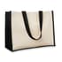 Boodschappentas van jute en canvas. Binnenzijde is gelamineerd. Lange hengsels. Perfect voor jute tassen bedrukken.
