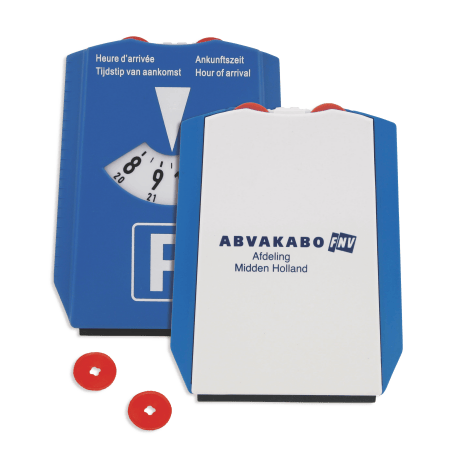Parkeerschijf 120 x 155 x 8 mm IJskrabber + Winkelwagenmuntjes, kunststof.