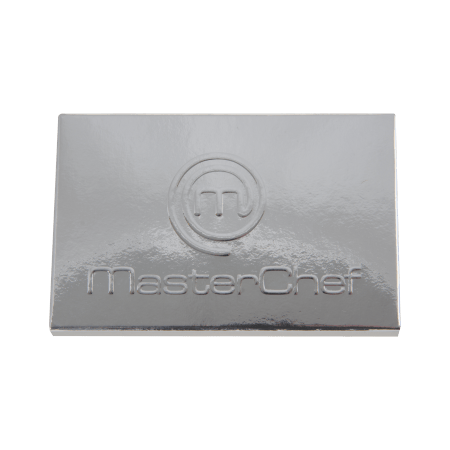 Creditcard chocolade tablet met embossing in zilverkleurige omslag. Belgische Barry Callebaut chocolade