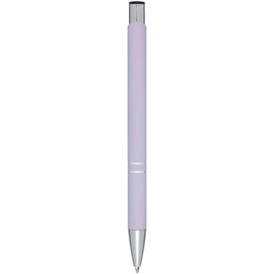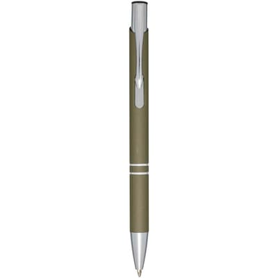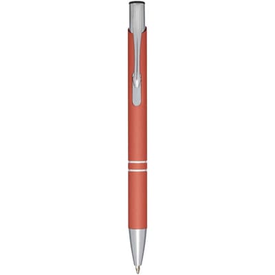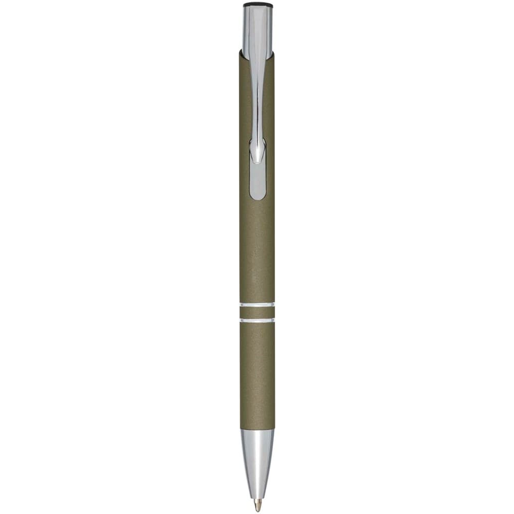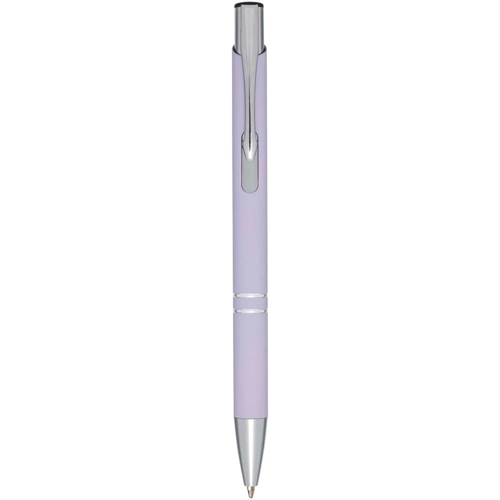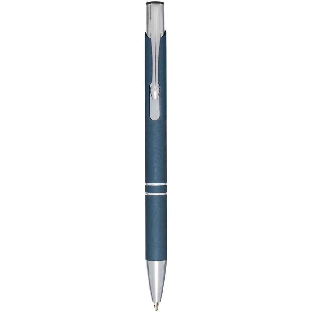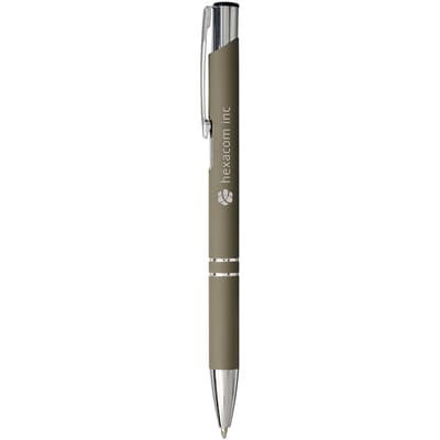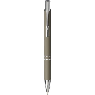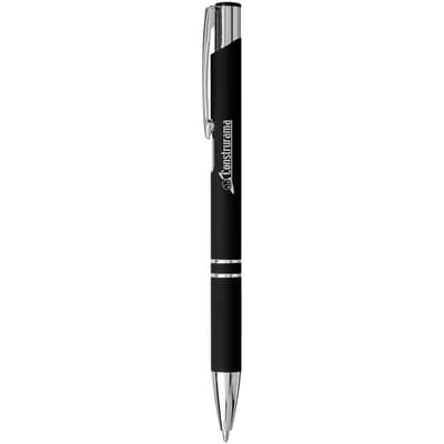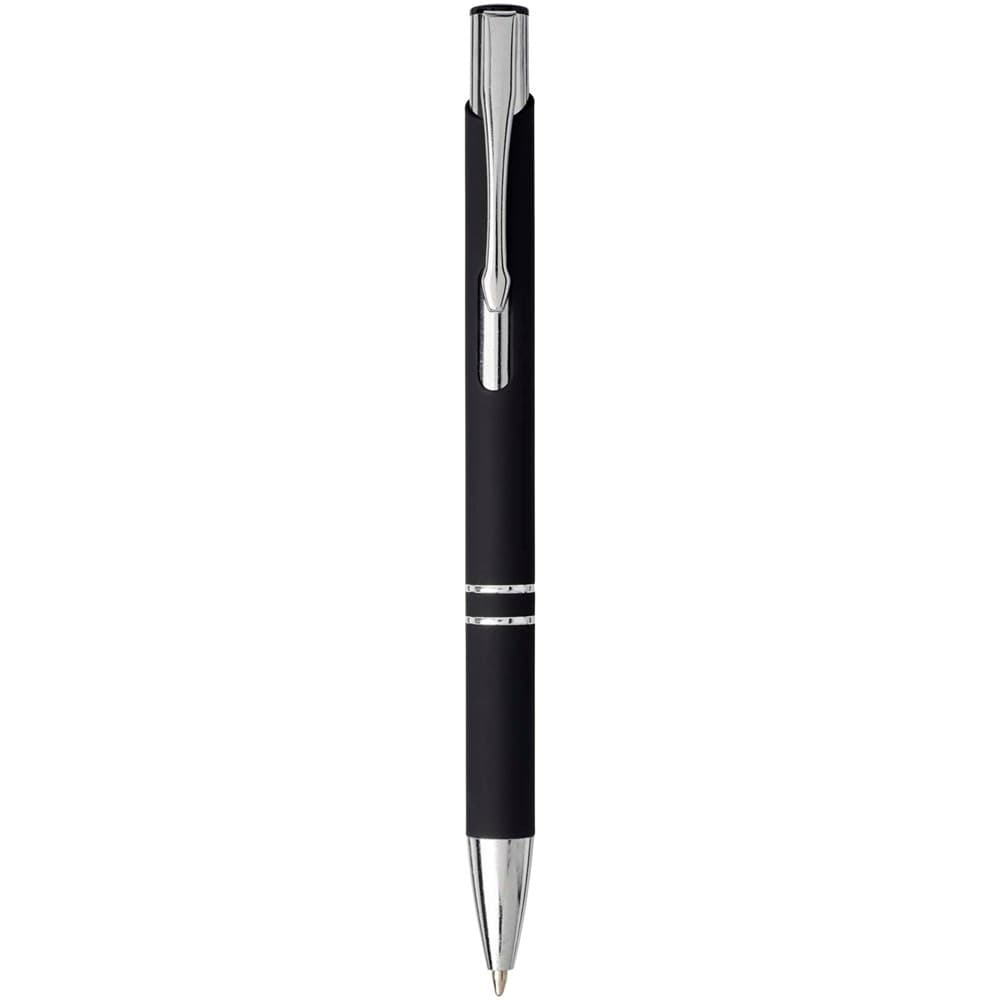 De rubberen coating geeft de pen een zachte touch, en zodra de zilveren onderlaag van de pen met een laser gegraveerd is, wordt de zilveren onderlaag van de pen zichtbaar. Balpen met klikmechanisme met zwarte rubberen coating en verchroomde afwerking en zwarte ABS bovenkant. Het uitgebreide en populaire Moneta-assortiment is verkrijgbaar in vele verschillende stijlen en afwerkingen.