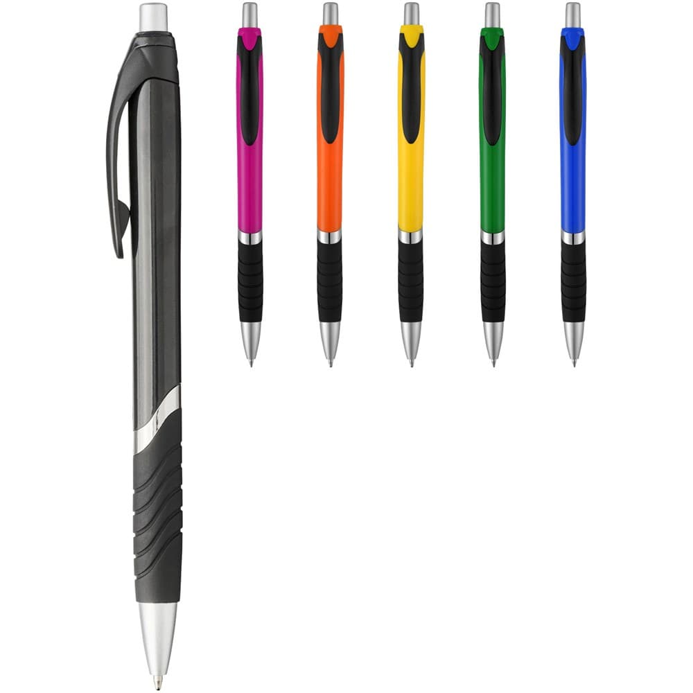 Populaire balpen met klikmechanisme en effen gekleurde huls, zwarte rubberen grip en extra zilveren accenten. Verkrijgbaar in diverse aantrekkelijke kleuren.