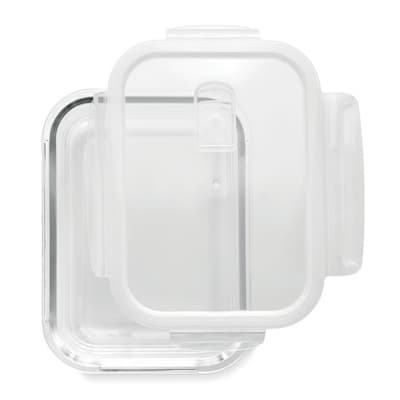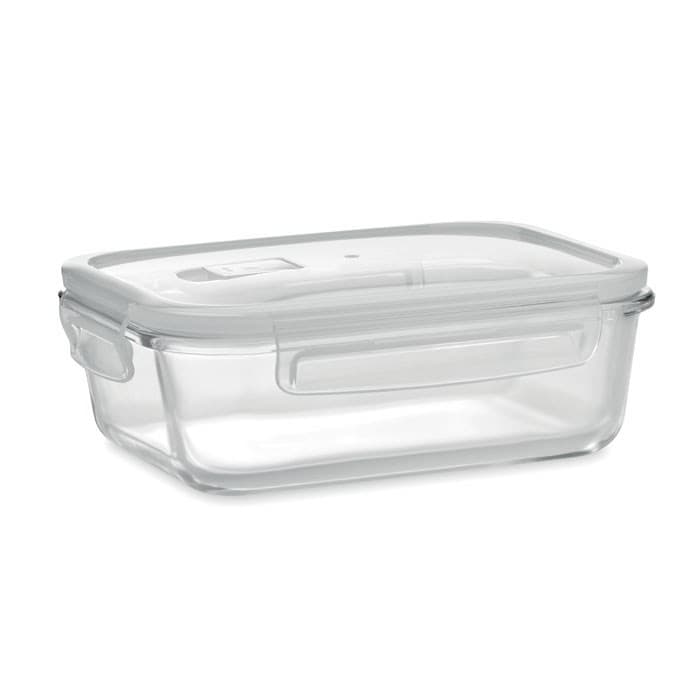 Lunchbox van hoogwaardig borosilicaat glas met luchtdichte deksel in PP. Geschikt voor magnetron. Inhoud 900ML.