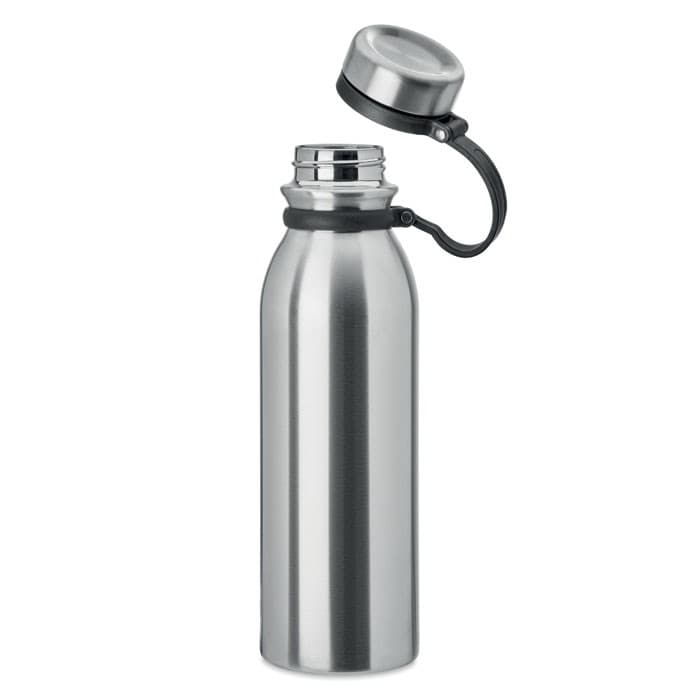 Roestvrijstalen dubbelwandige lekvrije drinkfles met siliconen grip voor extra draaggemak. BPA vrij. Inhoud 600ML. Lekvrij.