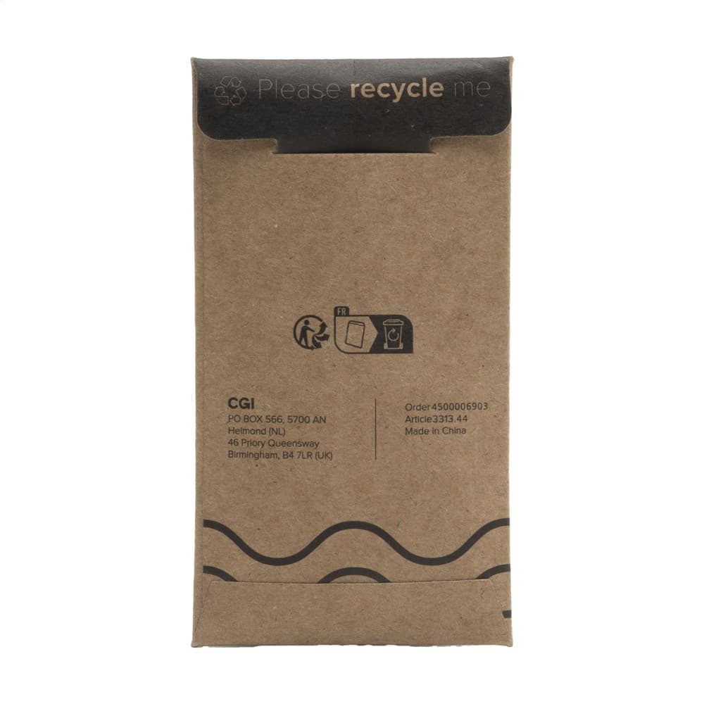 Rechthoekige, beukenhouten sleutelhanger aan stevige sleutelring. Per stuk in kraft envelop.