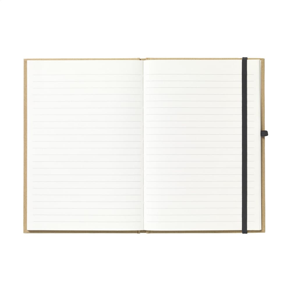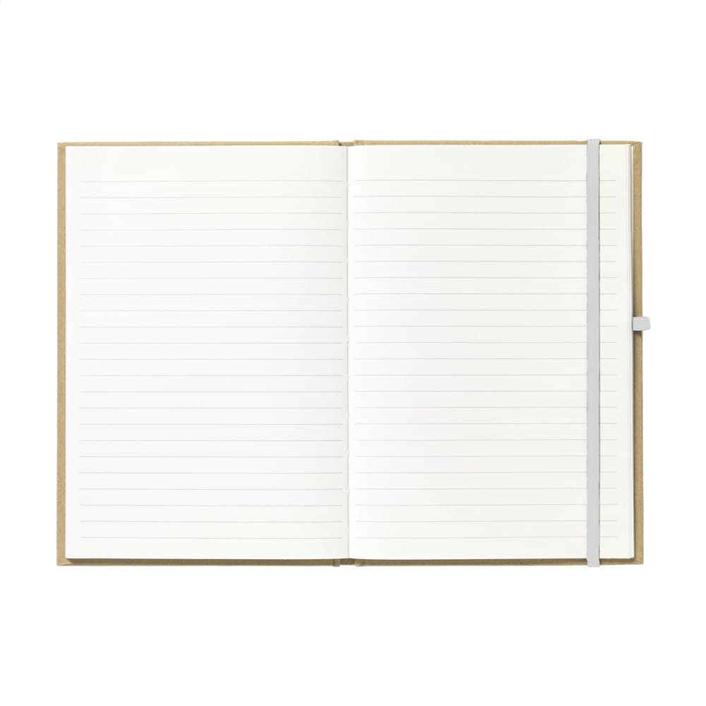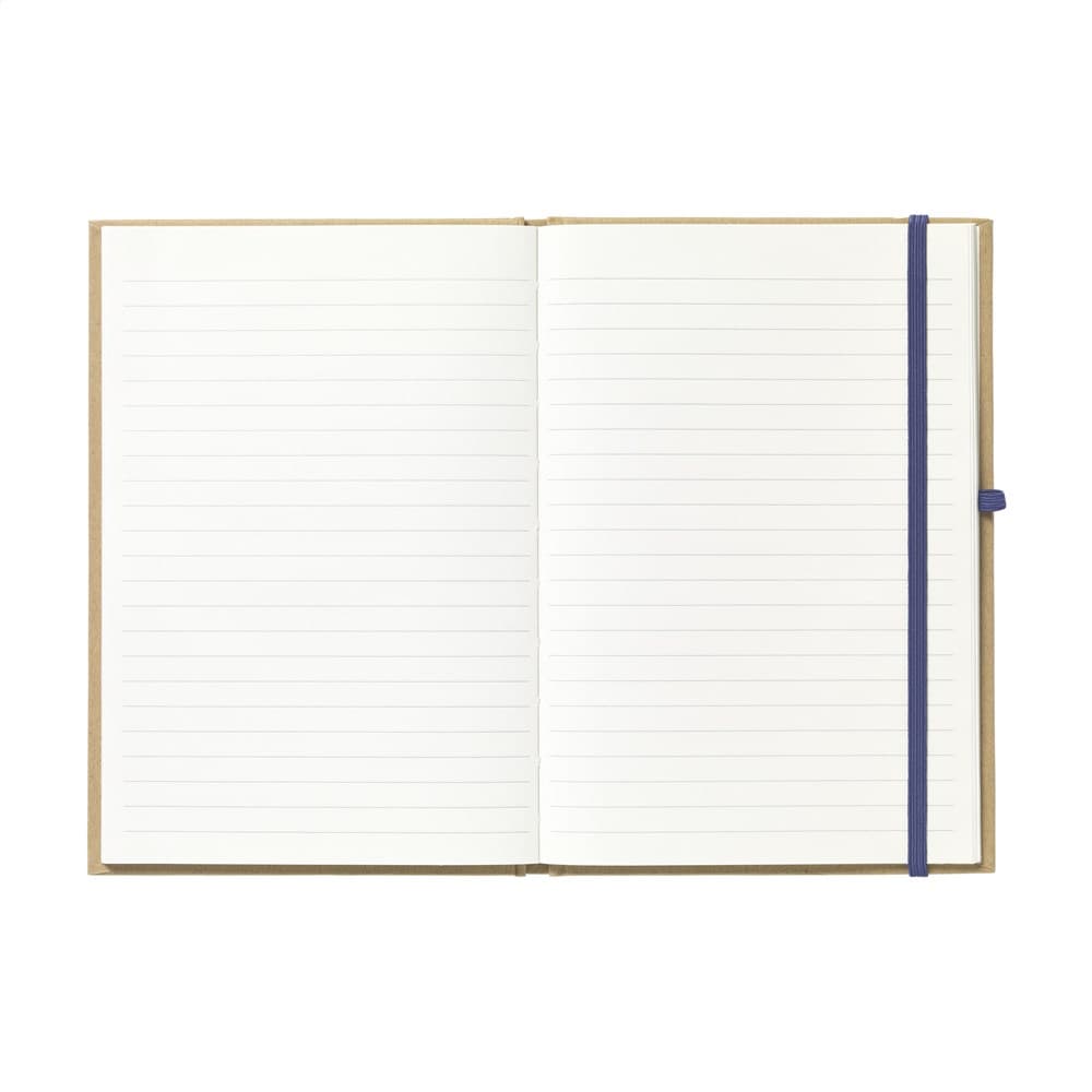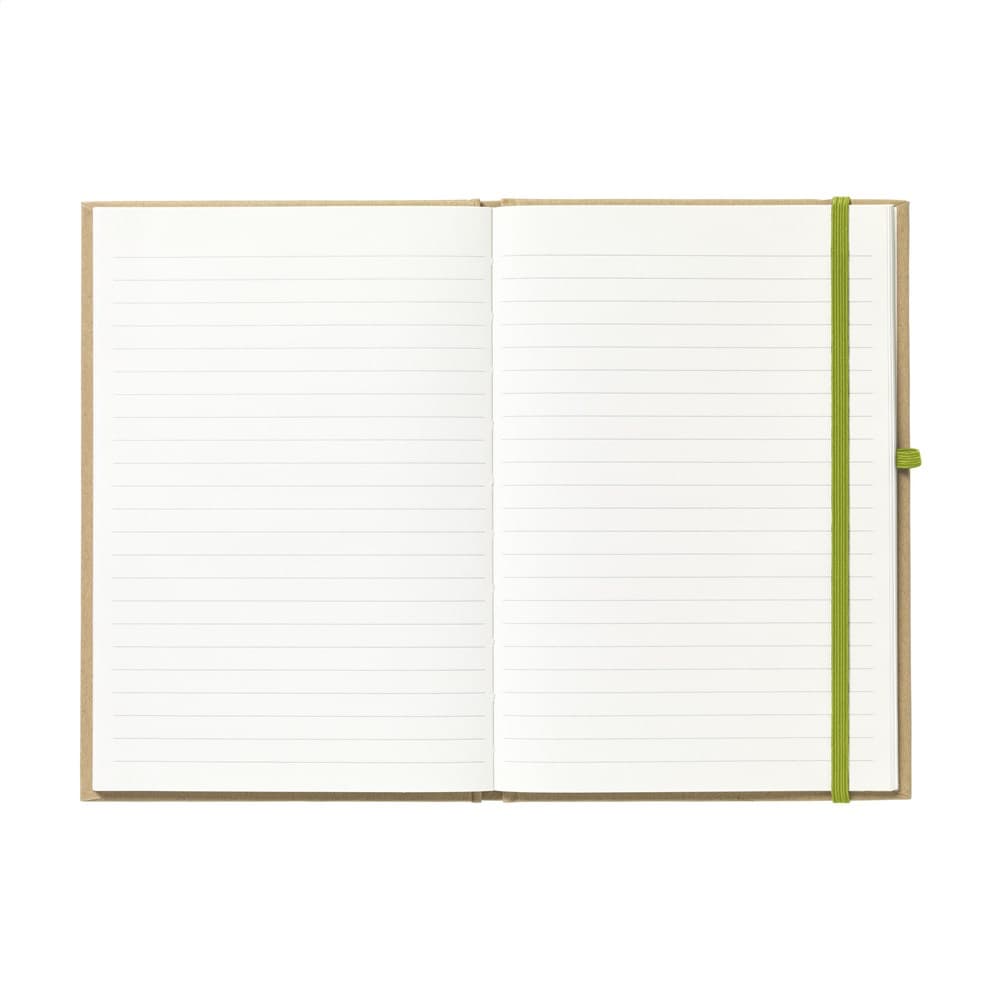 Milieuvriendelijk, A5 formaat notitieboekje van gerecycled materiaal. Met ca. 80 vel/160 pagina's crèmekleurig, gelinieerd papier (70 g/m²), een handige penlus en elastische sluiting.
