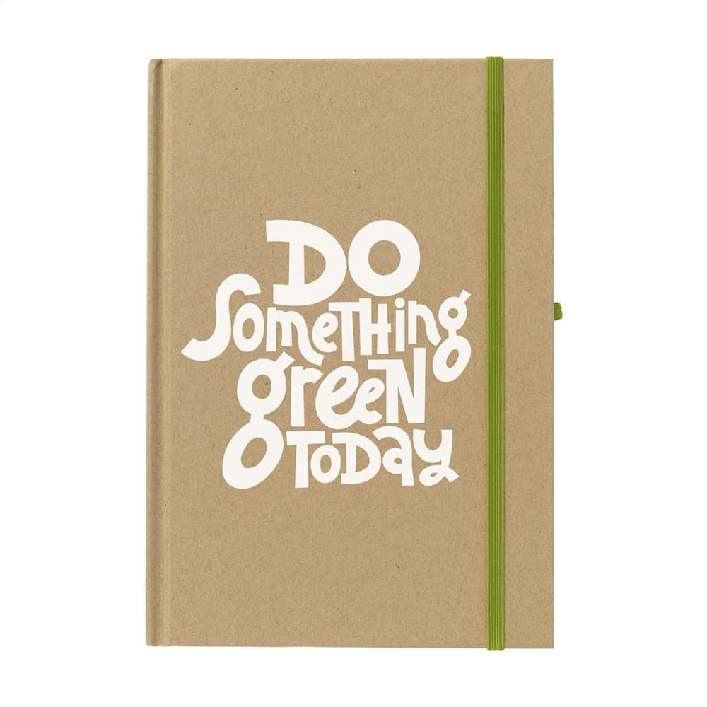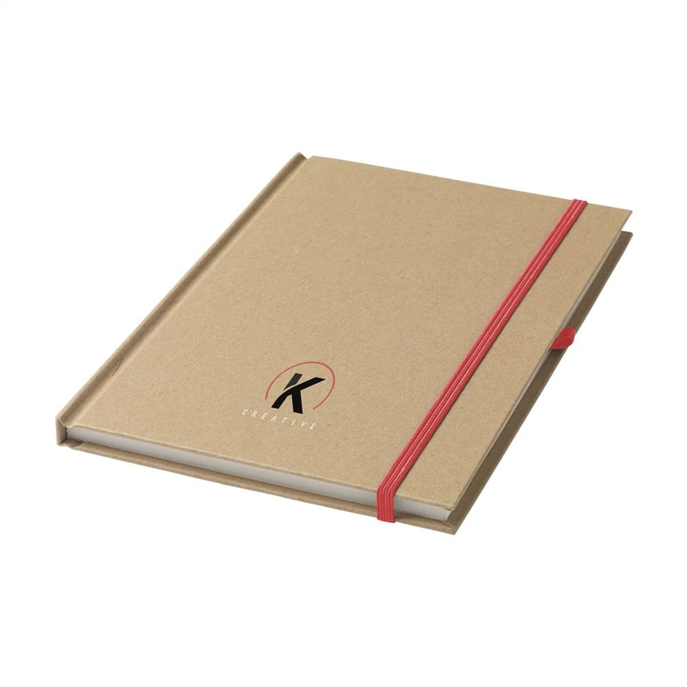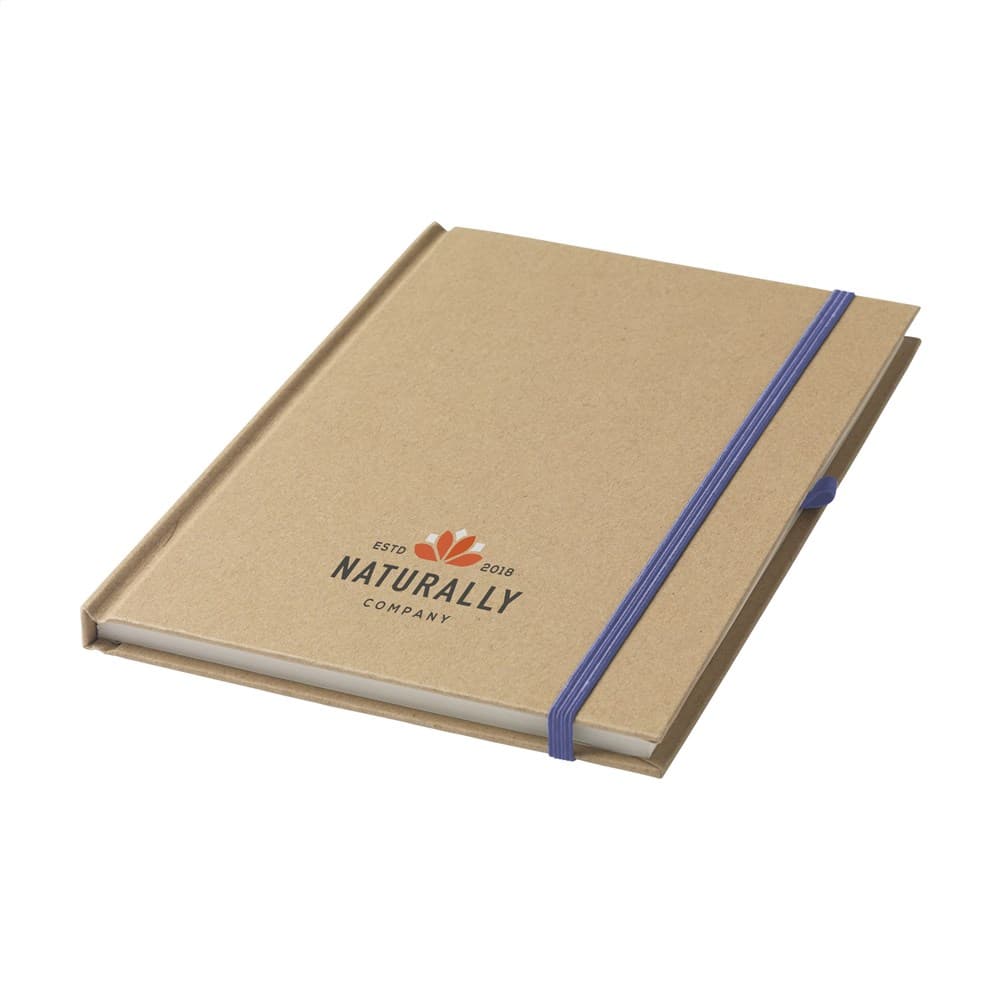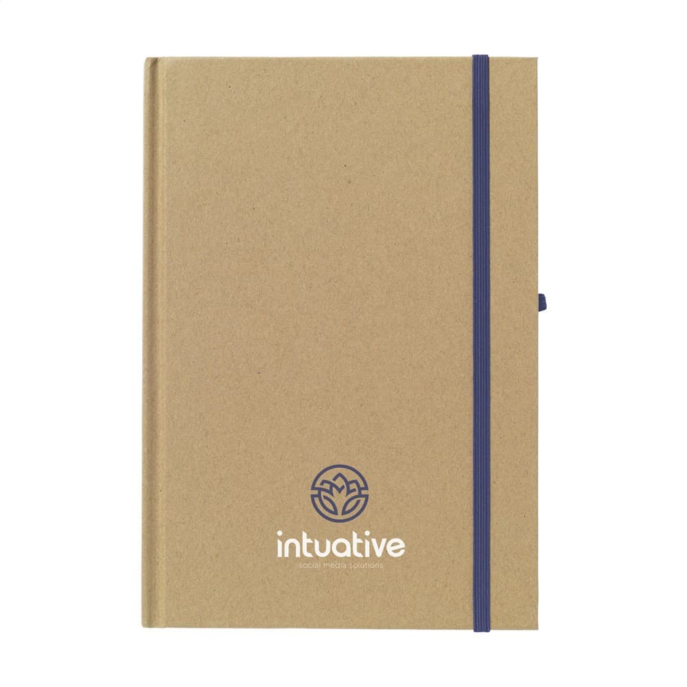 Milieuvriendelijk, A5 formaat notitieboekje van gerecycled materiaal. Met ca. 80 vel/160 pagina's crèmekleurig, gelinieerd papier (70 g/m²), een handige penlus en elastische sluiting.