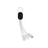 4 in 1 oplaadkabel met karabijnhaak. USB-input en voor output: dubbelzijdige ( 1 zijde voor IOS/1 zijde voor micro) connector voor IOS-apparaten, micro-USB en type C-output. Geschikt voor het opladen van alle gangbare mobiele apparaten. Behuizing van ABS-materiaal met 10 cm lange nylon gevlochten kabels. Ondersteunt tot 2.1 A opladen.