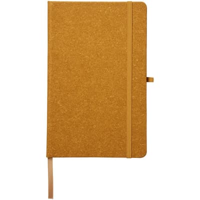 Notitieboekje in A5 formaat met omslag van lederen restjes. Voorzien van een elastische band, pennenlus, lint als bladwijzer en 80 vellen, 80-grams gelinieerd papier.